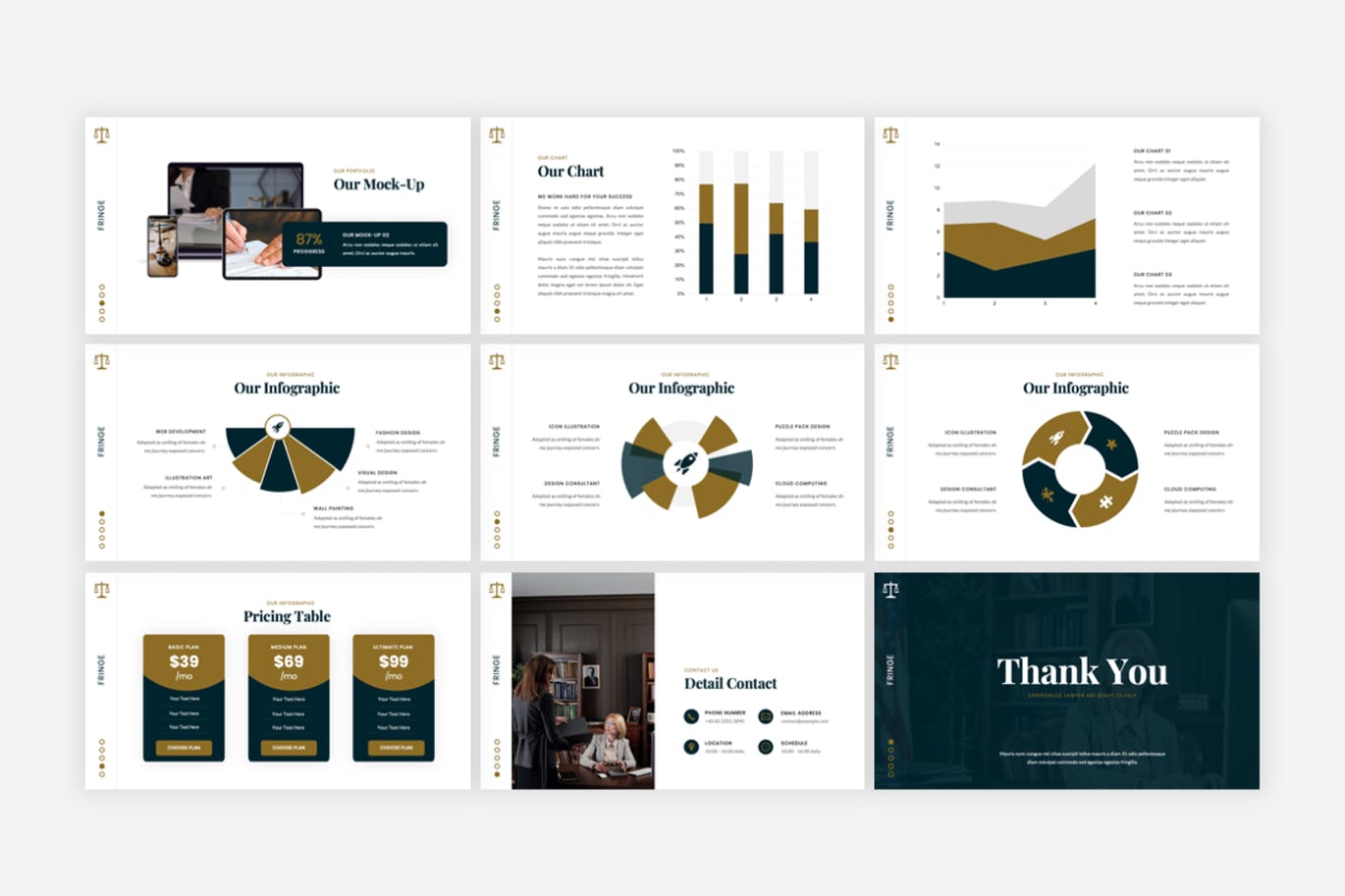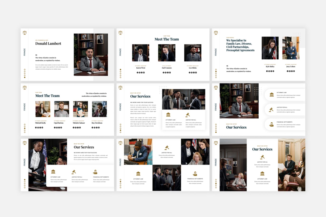 边缘律师PowerPoint模板每张幻灯片都是独一无二的,不仅仅是重复的布局。只需使用PowerPoint,你就可以为你的品牌打造华丽的宣传平台,它是数字媒体工具包、营销工具包或演示文稿的完美选择。