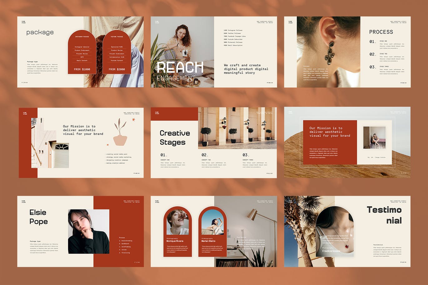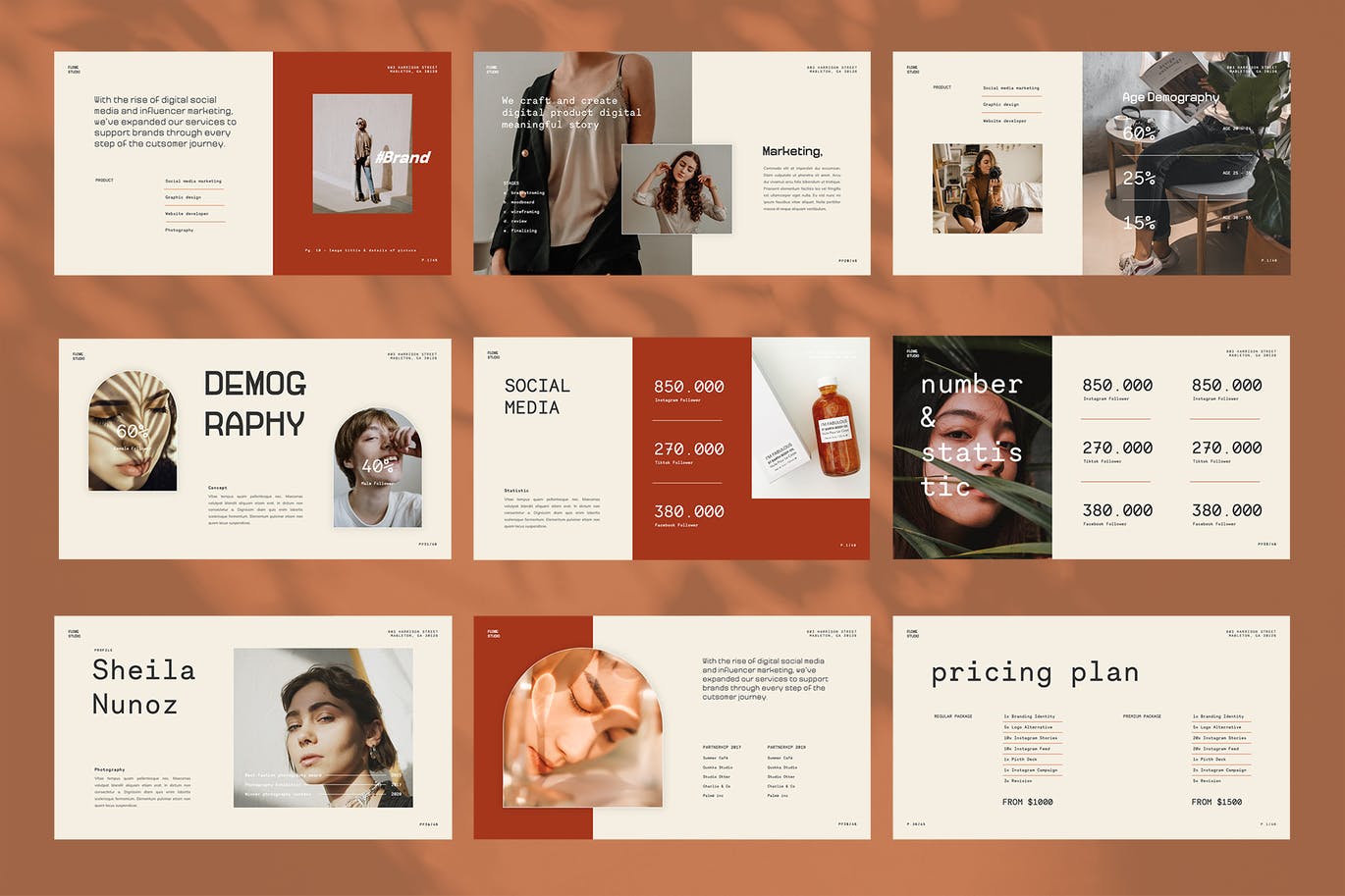 这次分享的是,复古时尚欧美风服装产品发布产品宣传PPT模板(pptx),每张幻灯片都是独一无二的,而不仅仅是重复的布局。可以为您的品牌创建华丽的音调平台,非常适合数字媒体套件、营销套件或演示文稿。