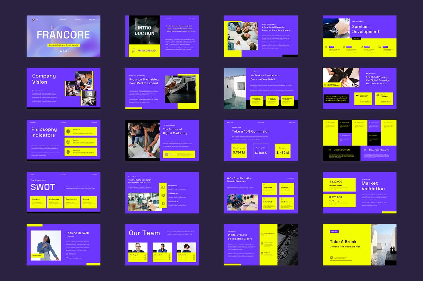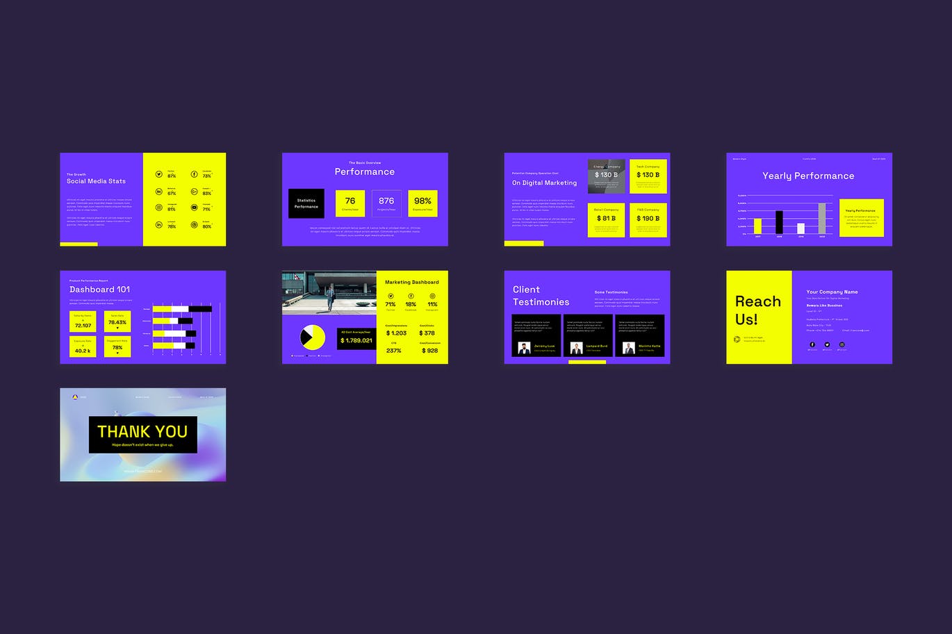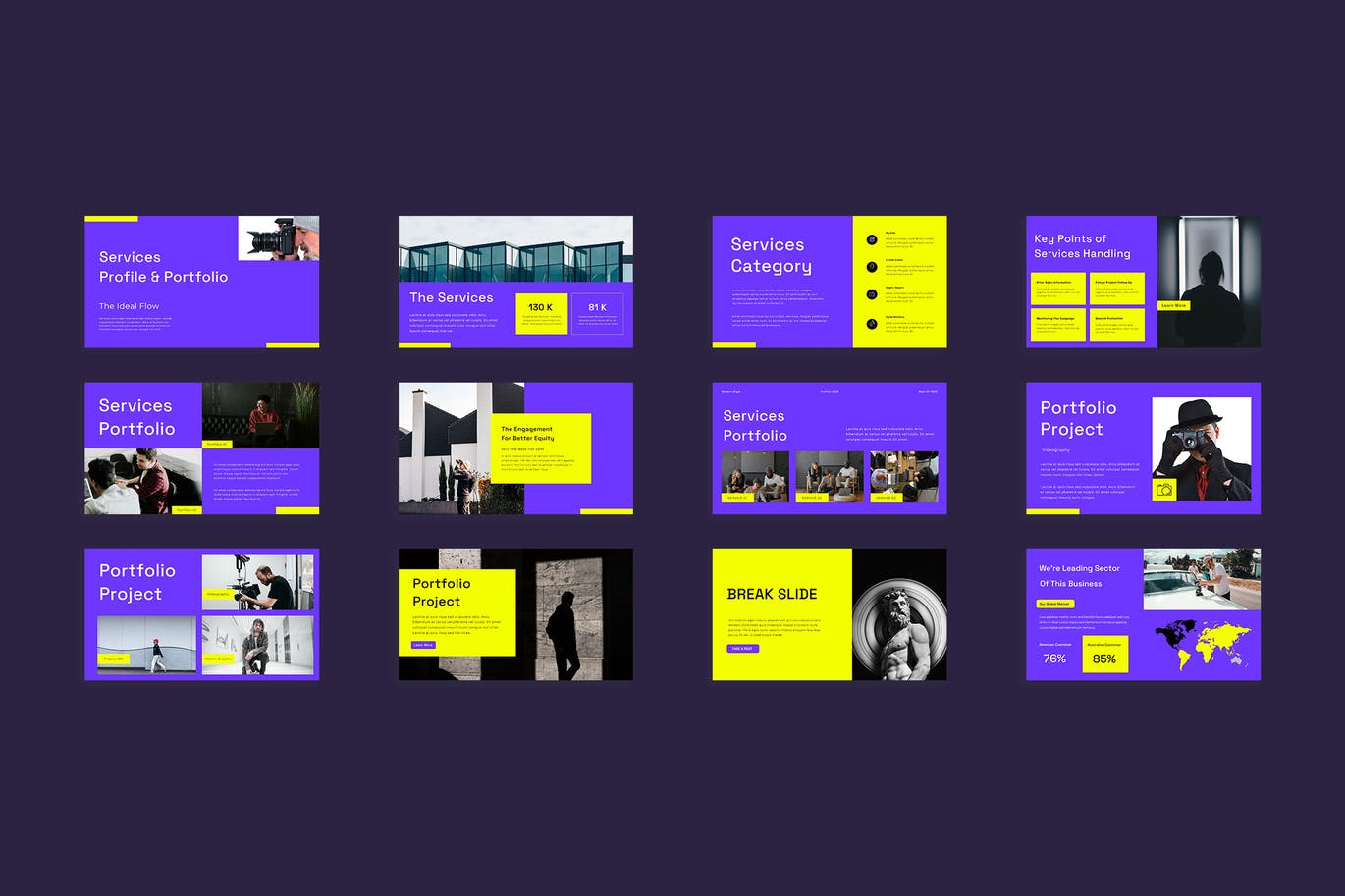 这个多功能的演示模板非常适用于许多不同的业务和个人用途,例如:推销平台、营销策略、产品组合、公司报告、公司简介、最终项目、个人组合等等。