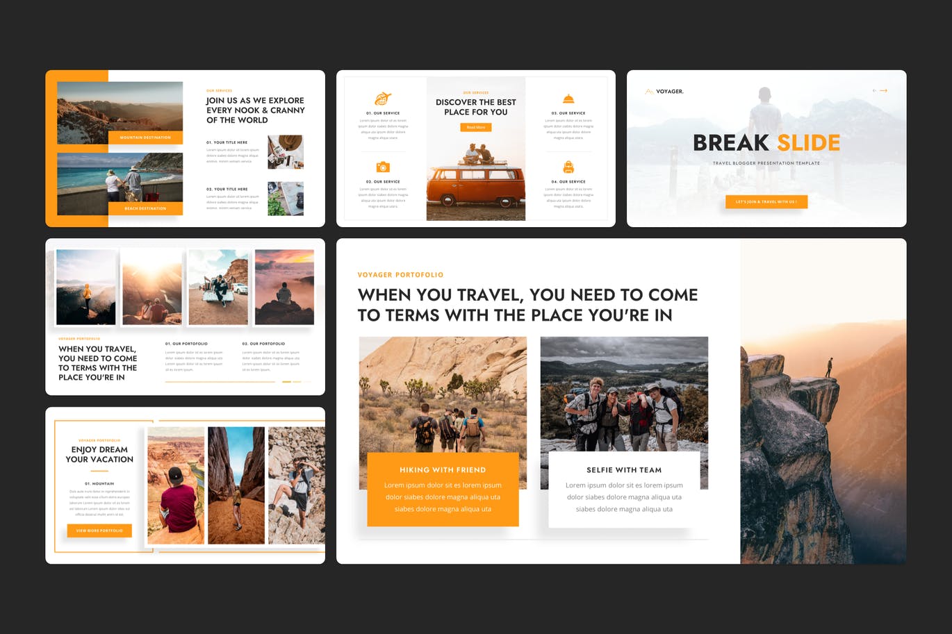 介绍**Voyager-旅游博主PowerPoint演示模板**