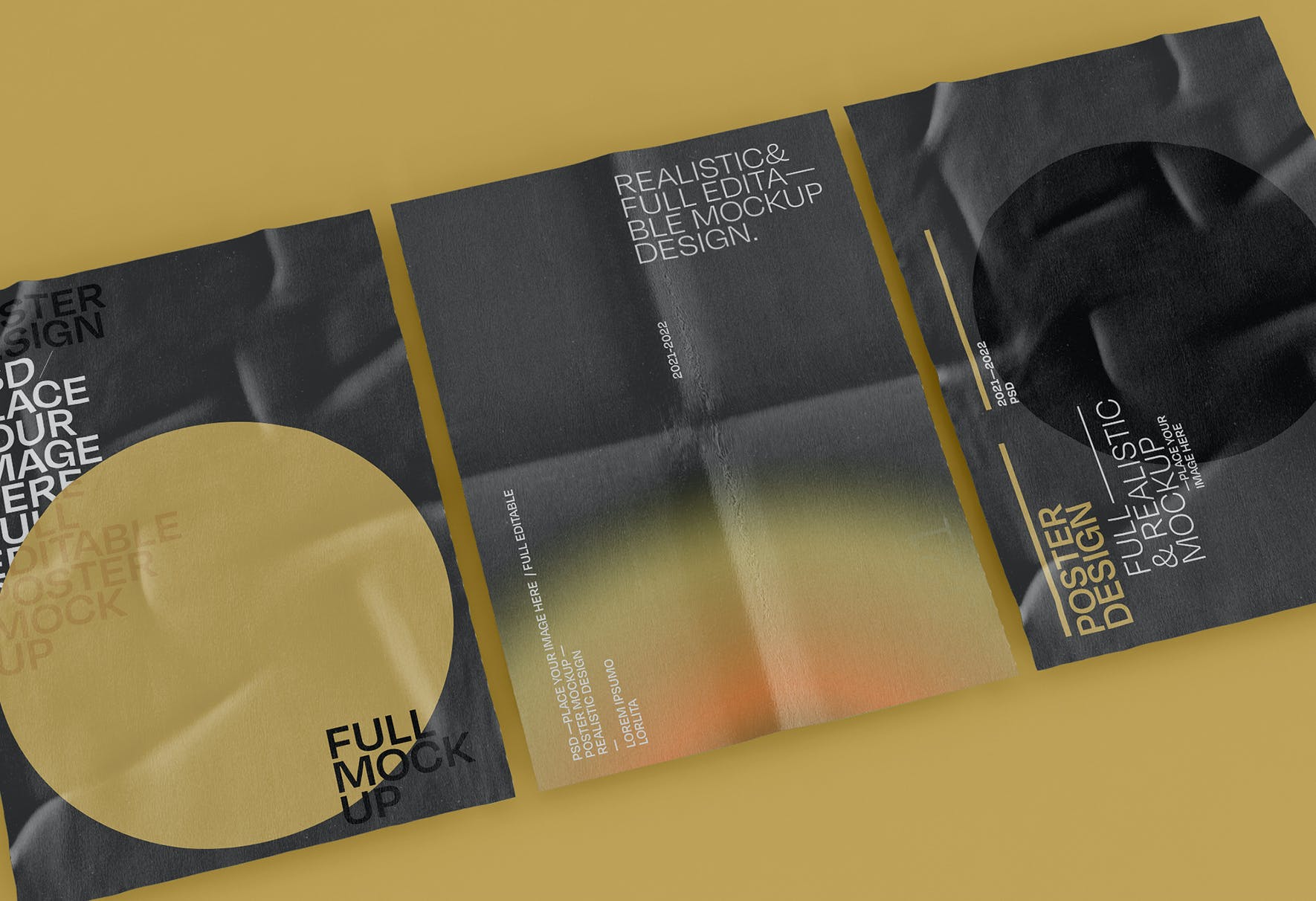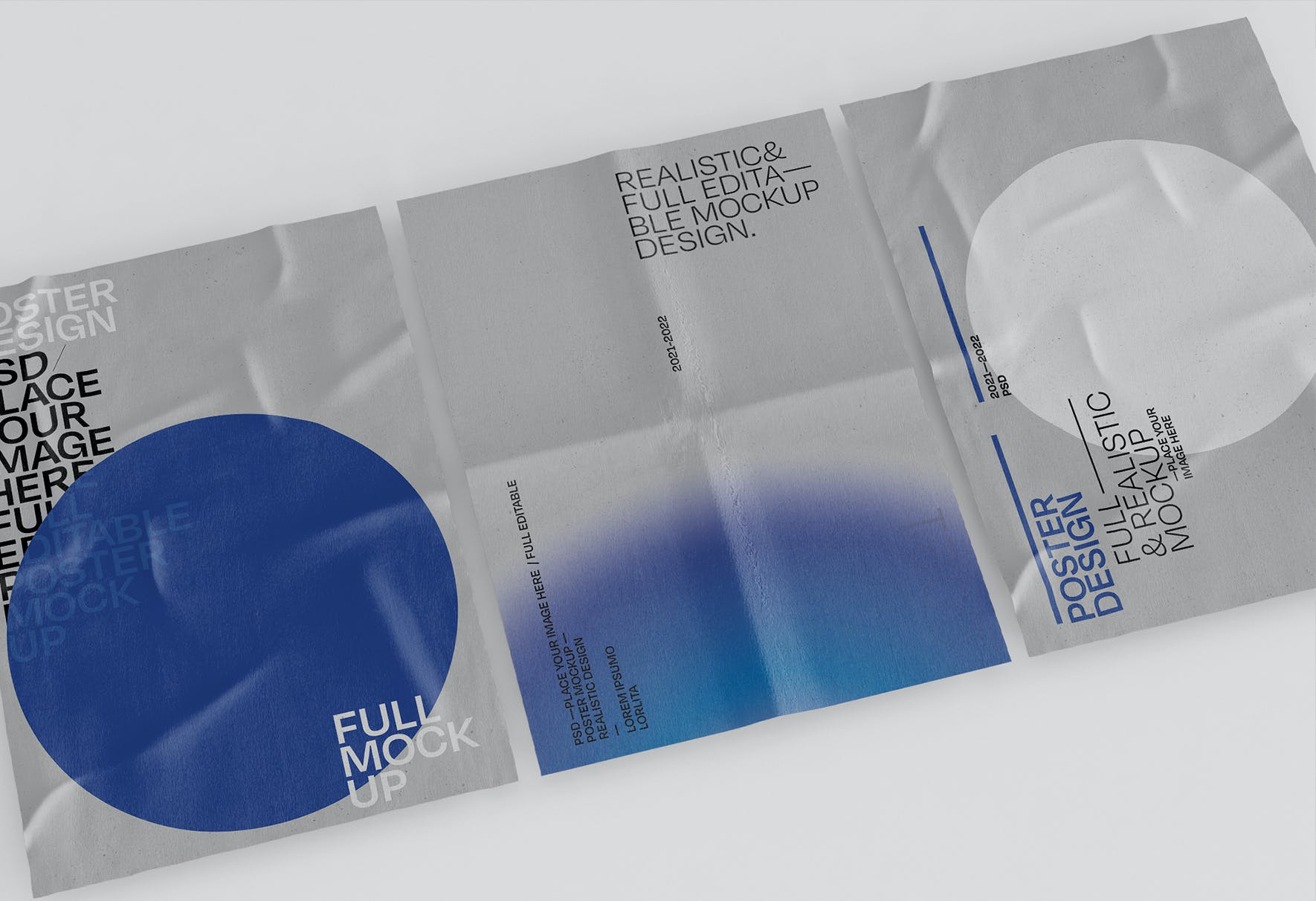 皱巴巴的海报展示样机,有一个智能对象可帮助您调整设计,只需拖放即可。使用起来非常简单,以完美的方式展示您的作品,如传单、海报、文具和其他设计。高分辨率 (300 dpi), 使用纯色图层易于重新着色。示例样本设计不包含在下载文件中。