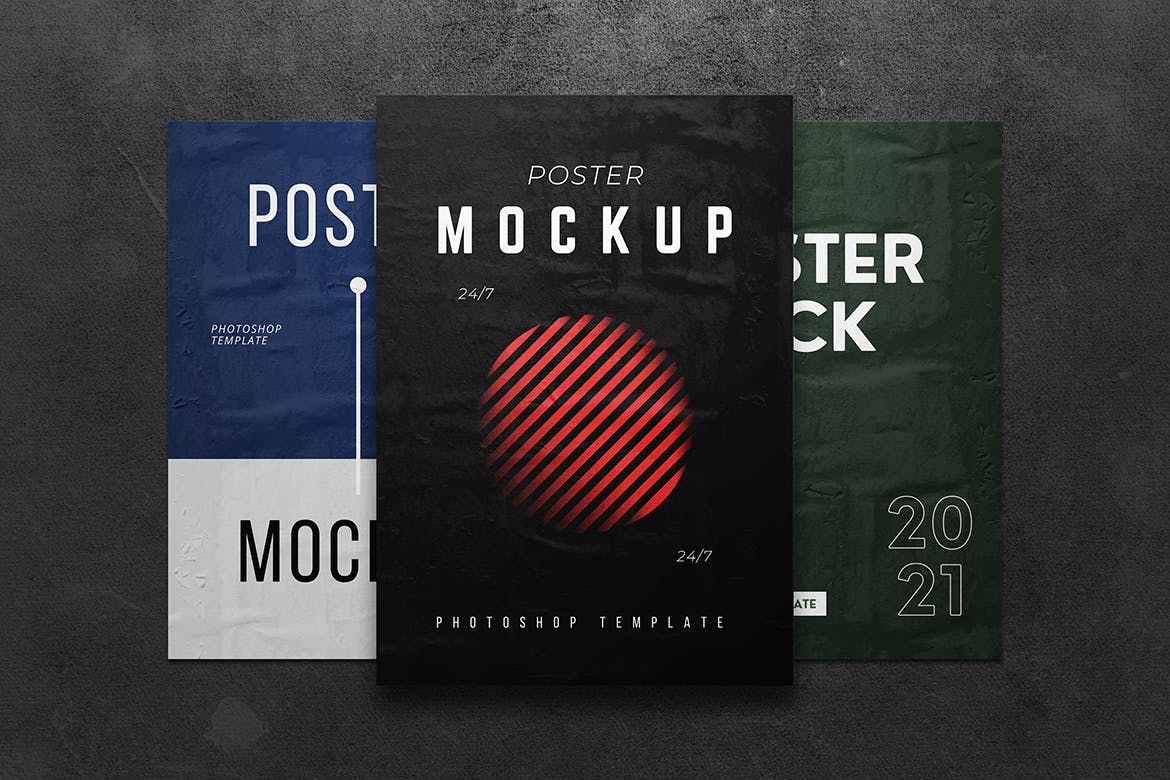 胶合街道海报展示样机, 将帮助您以最佳方式展示您的作品。 分辨率为3000x2000px, 在一秒钟内创建一个整洁的演示文稿。 只需打开 psd 文件并将您的设计放置到智能对象层点击保存即可。背景纹理选项和可编辑的背景颜色。