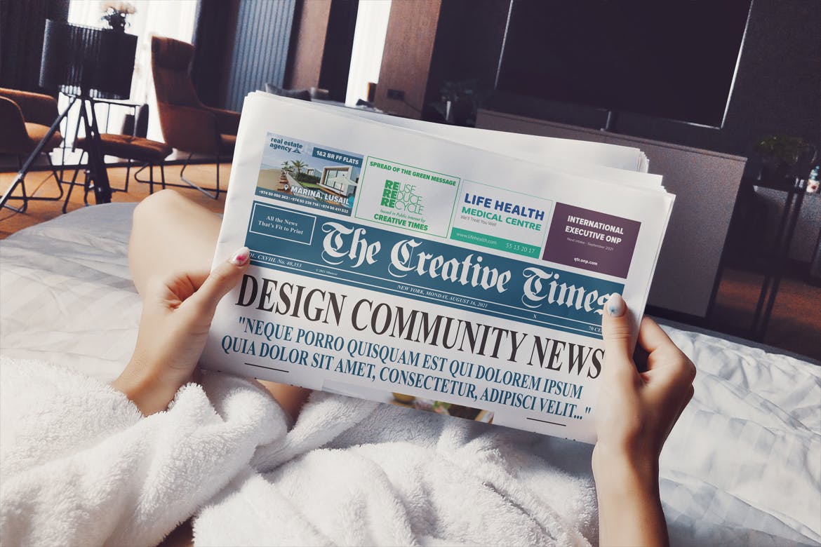 手拿新闻报纸效果图样机,高分辨率,4500×3000 像素,300dpi,通过智能对象轻松快速地进行编辑,有组织的图层和文件夹。