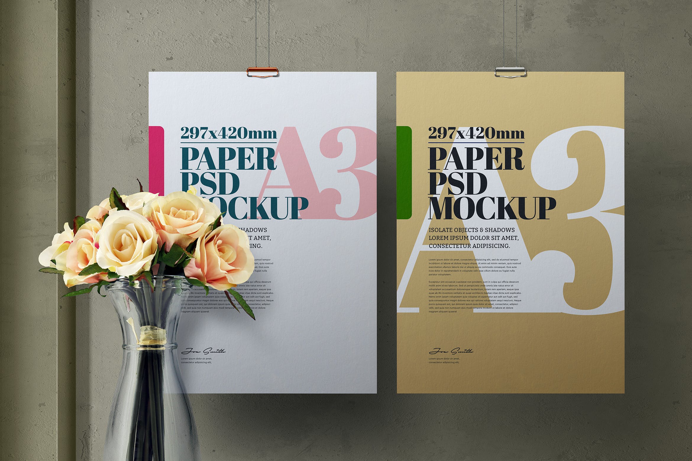 玫瑰花束A3尺寸吊挂海报样机,将帮助您改善演示文稿或任何其他项目。在这里您可以找到高质量的图像,以高分辨率拍摄。所有对象、灯光和阴影都单独分开。通过智能对象可以轻松编辑样机。非常适合印刷和Web设计。分开的对象;分离的光影层;多变的背景;使用智能对象放置您自己的图像。