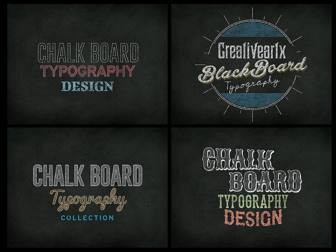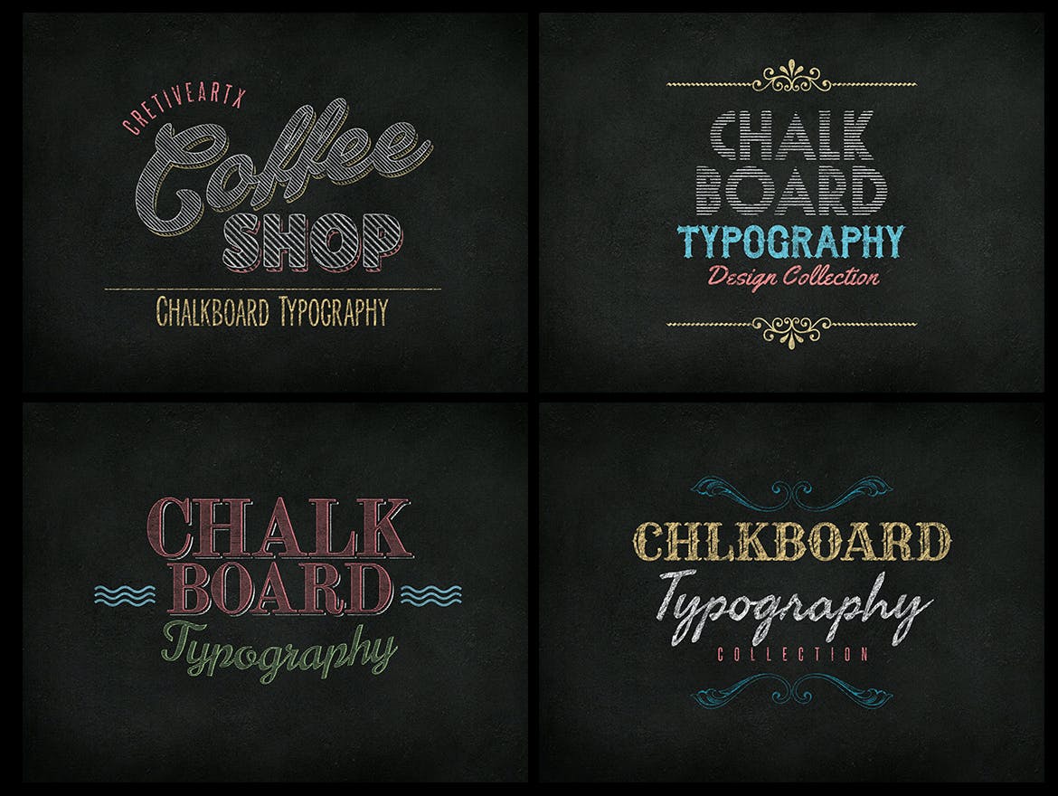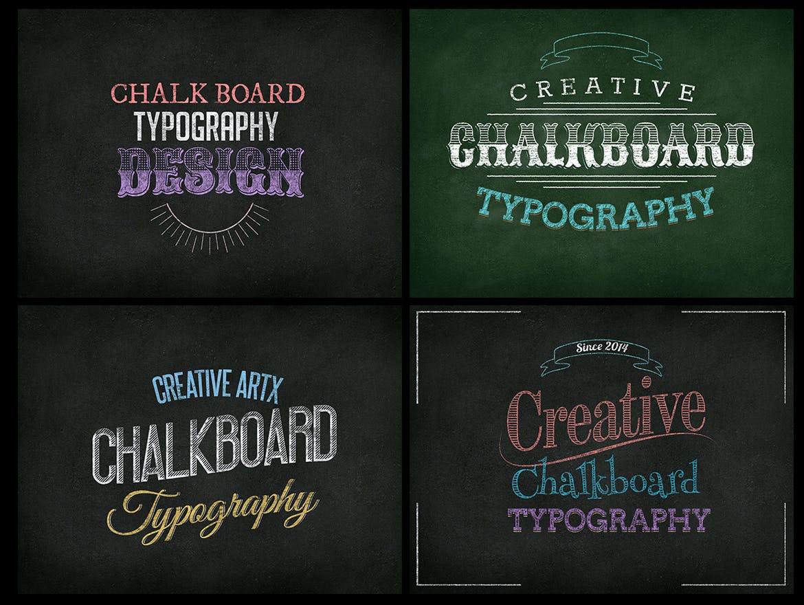 向大家分享这些黑板文字效果样式,可以轻松修改文本颜色和模式,12种完全分层的展示。