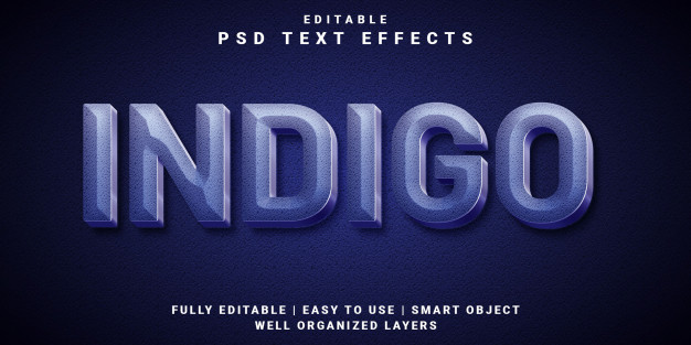 下载这个关于3d可编辑文本效果的PSD文件,靛蓝风格,完全可编辑的PS字体样式。