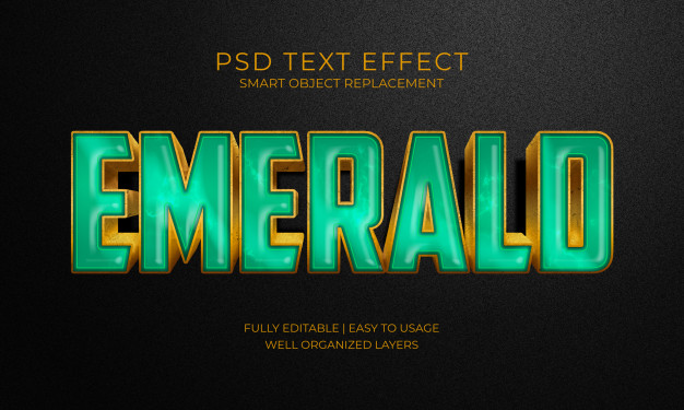 下载这个PSD文件,关于翠绿的石头文本效果样式,3D特效,高端的绿色材质,智能对象替代。