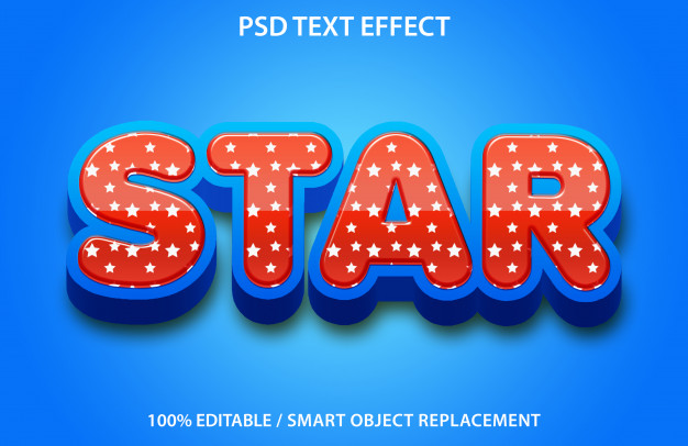 下载这个关于星形文字效果的PSD文件,红色中心,蓝色四周包围,蓝色背景,智能对象替代。
