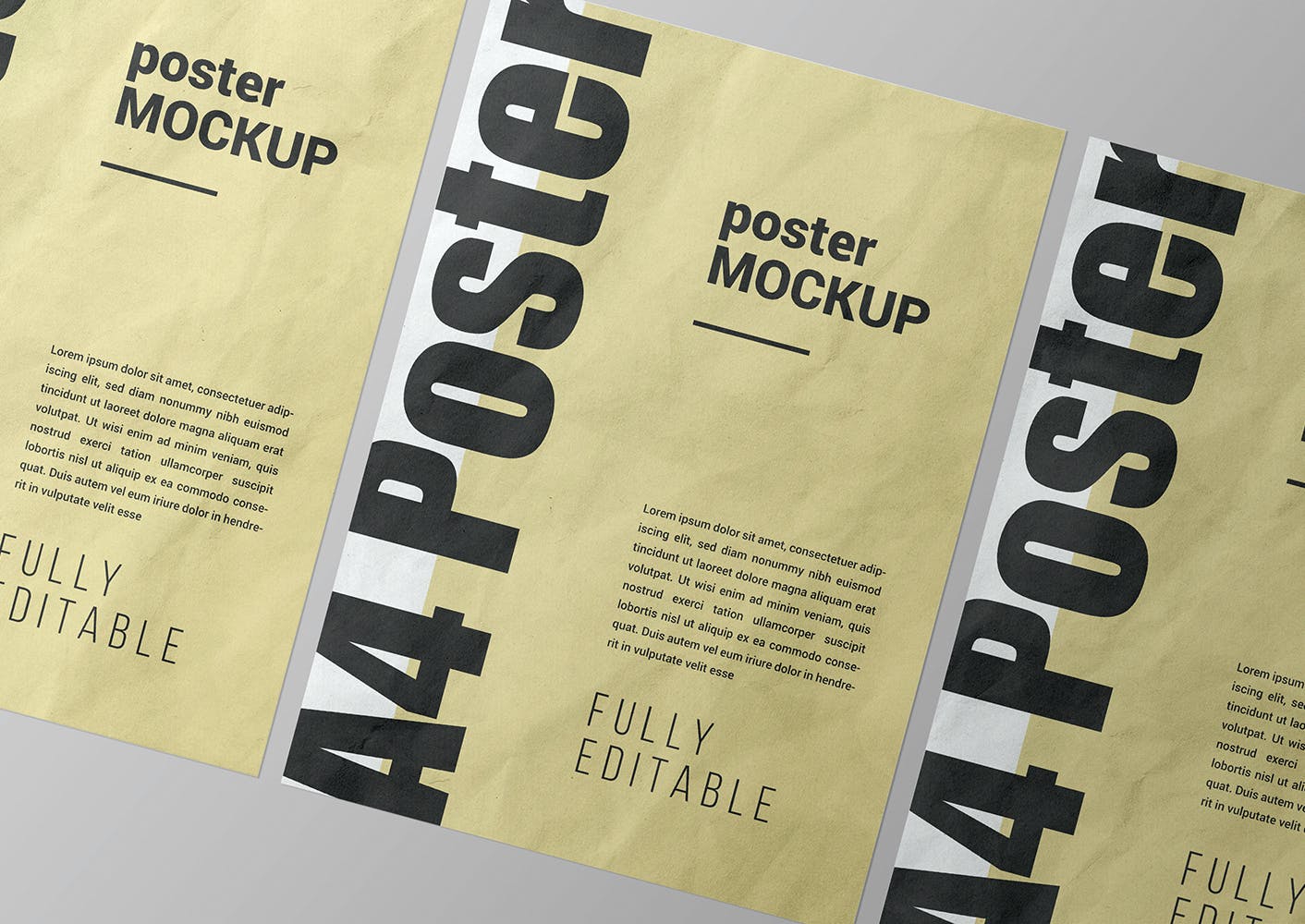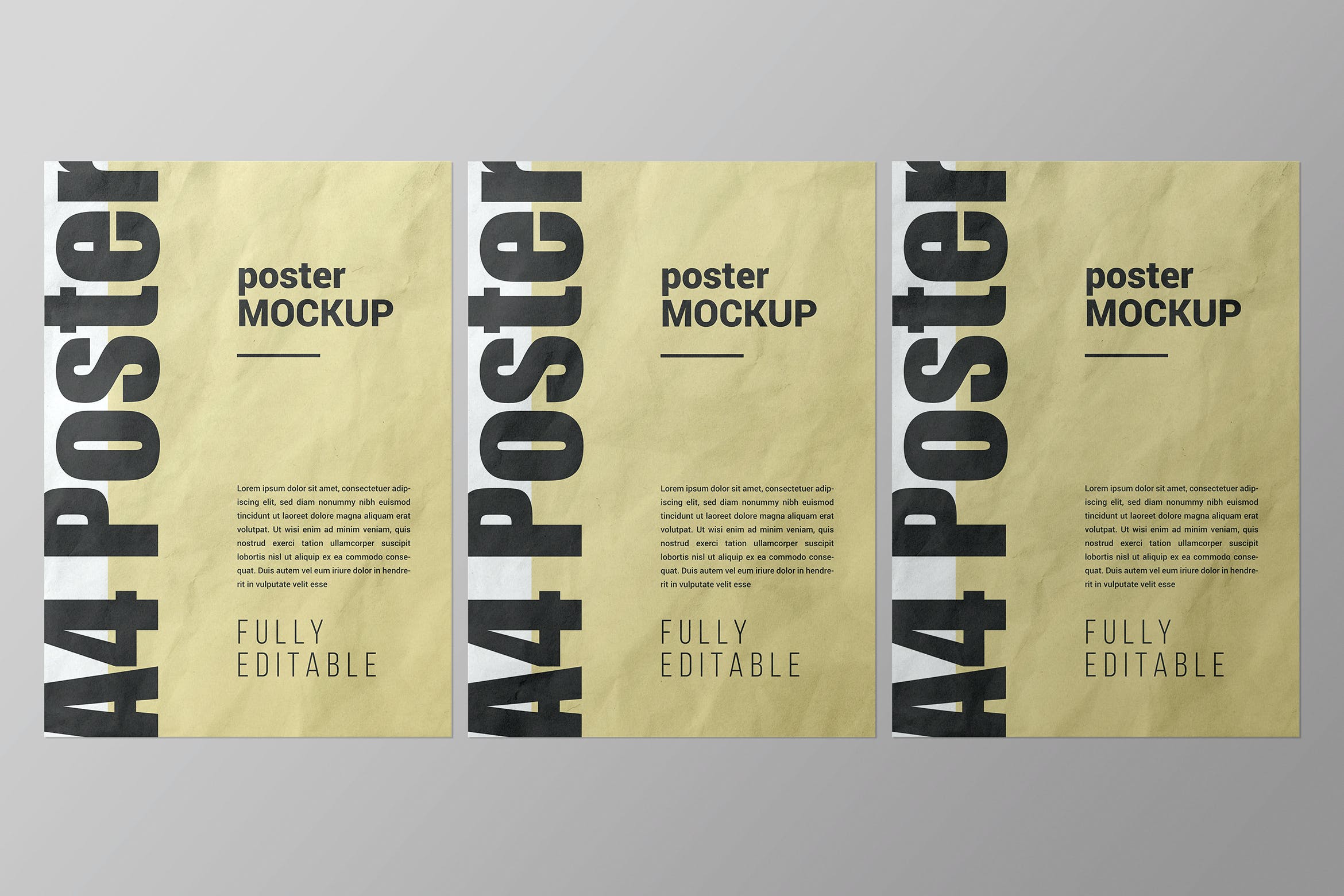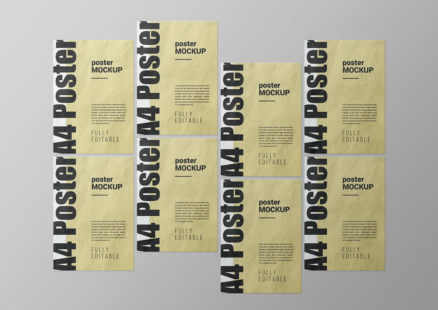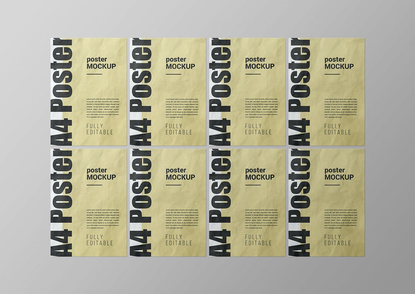 逼真的 A4 海报样机,用于展示您很酷的设计。一切都很简单! 只需通过智能对象更改设计,添加您自己的文本、图像或颜色并保存结果。
