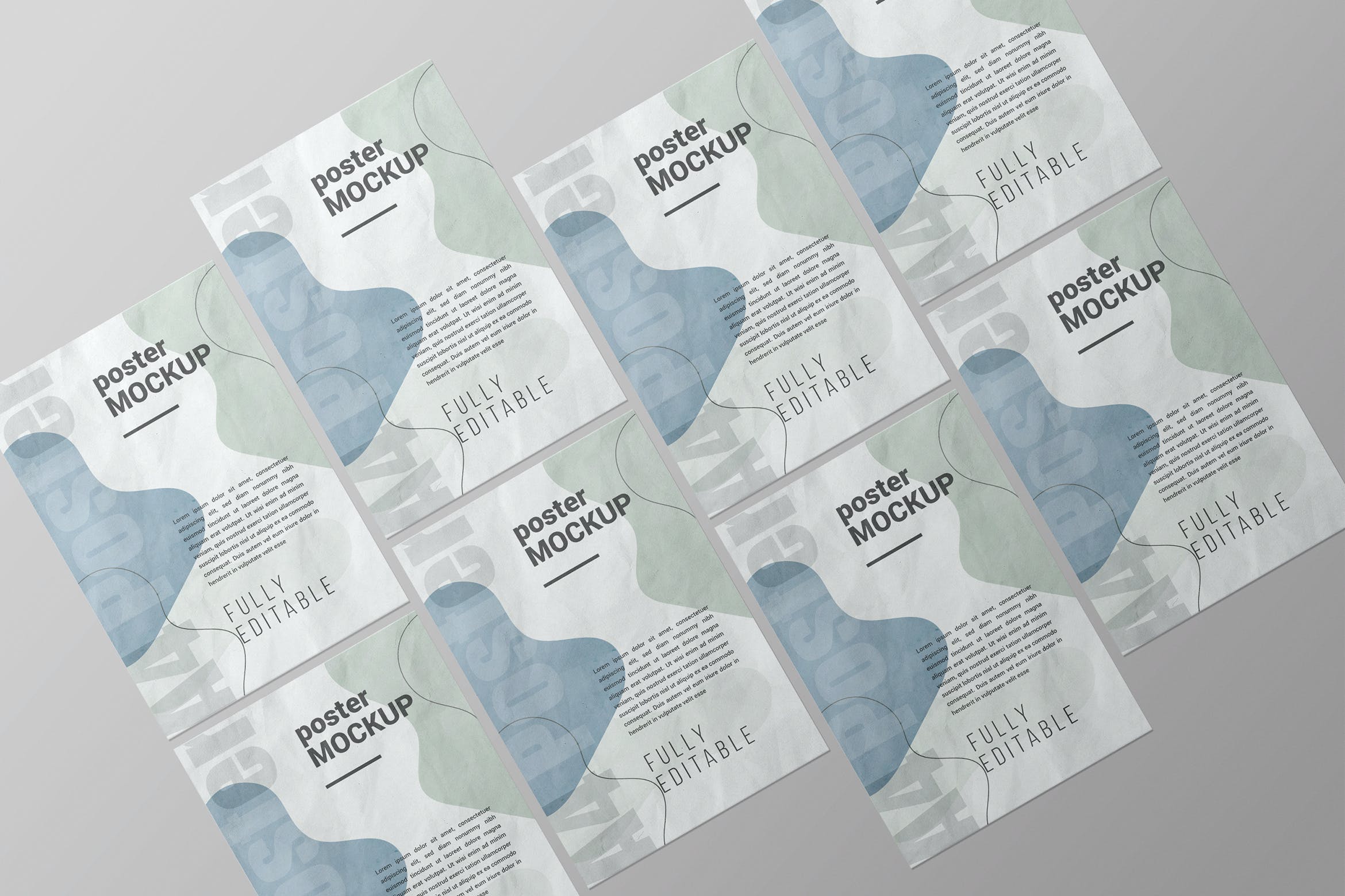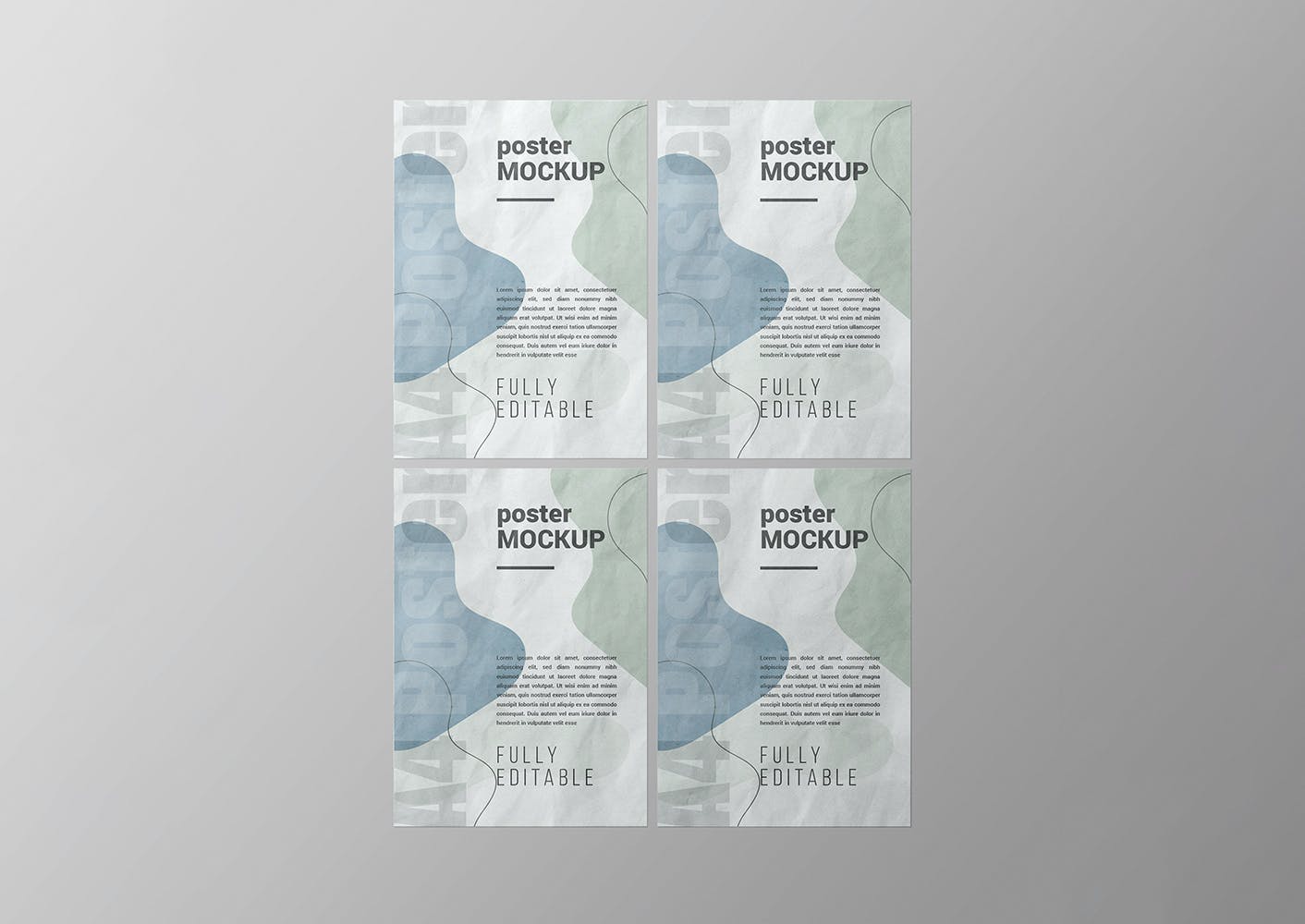 A4纸张海报设计样机,用于展示您很酷的设计。一切都很简单! 只需通过智能对象更改设计,添加您自己的文本、图像或颜色并保存结果。