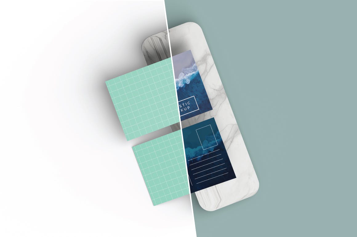 此顶视图明信片展示效果图样机适合在逼真的3D显示器中专业展示您的设计。 您可以使用智能对象功能轻松快速地替换设计。 具有智能对象功能,可帮助您在几秒钟内用自己的设计替换当前的设计。