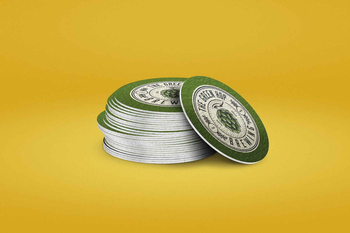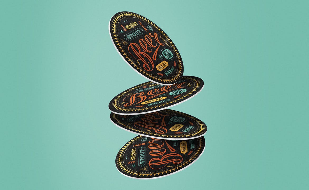 我提供了3种不同效果的圆形纸杯垫图案设计样机,包括堆栈,下坠和浮动,它们都与智能对象一起使用,这样,您只需双击图层并编辑内容即可。