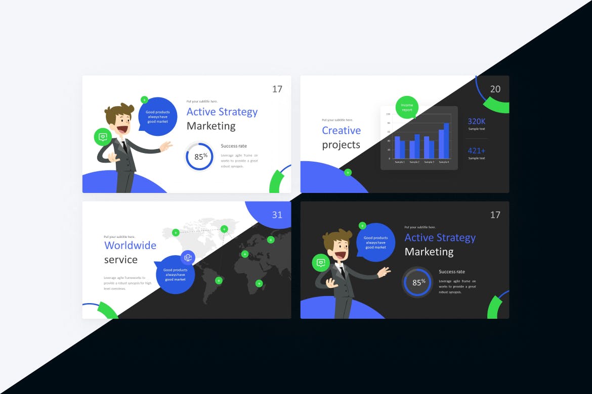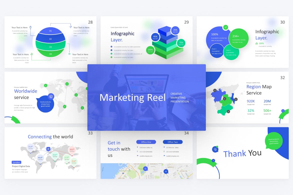 **市场营销真实的市场营销PowerPoint模板**如今我们可以很容易地找到许多令人惊叹的演示模板。因此,我们需要改变我们的思维方式,不仅要展示完美的幻灯片,还要提升其中的体验。在这里,我们向您展示一个信息图表包,让您在业务发展的每个阶段都有一个整体的品牌接触点,从开始一个新项目,在竞争对手中建立认可,到以一个改进的目标主张来完成。