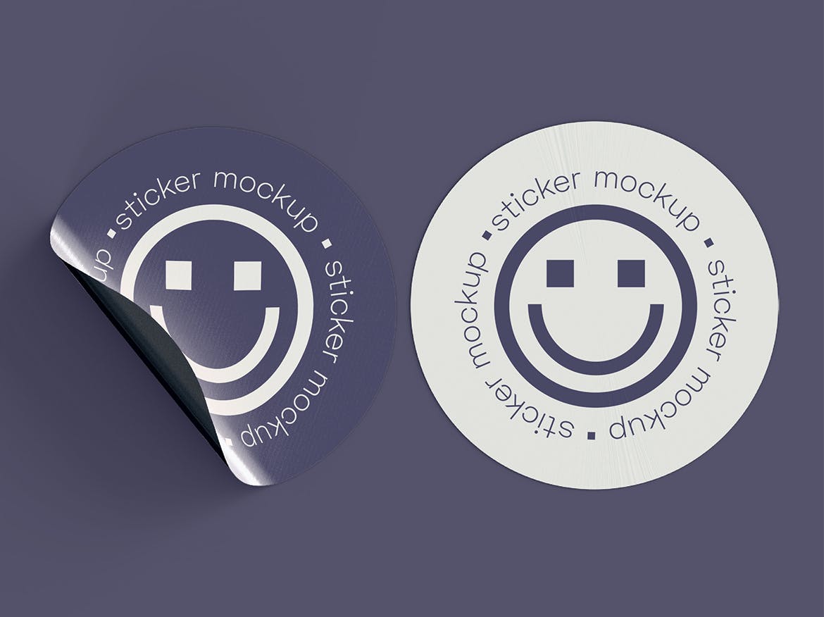 两个不干胶贴纸标签设计样机,样机上有一个智能对象,可帮助您调整设计。 只需将其拖放即可。 使用起来非常简单。 通过使用纯色图层,易于重新着色。高分辨率(300 dpi)。 享受优质的品质!下载文件中不包含样本设计。
