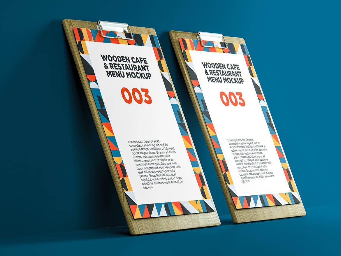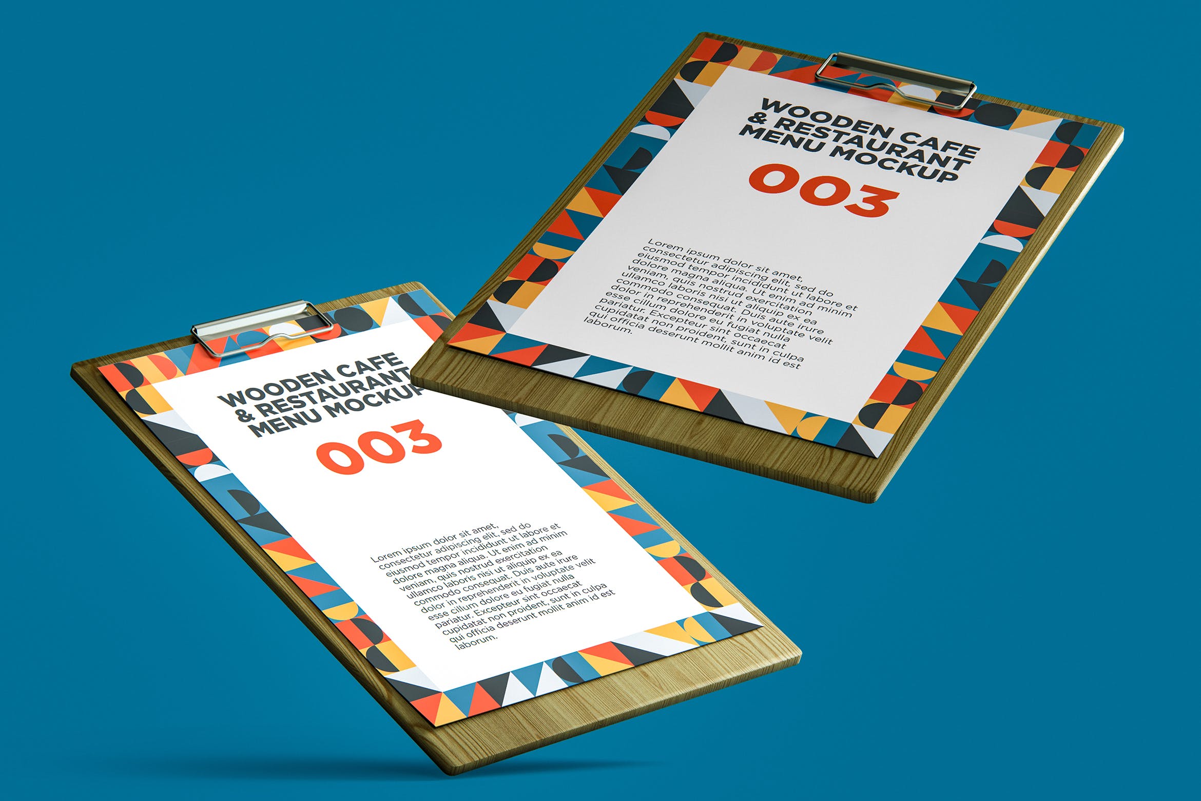 逼真的木制餐厅菜单/餐牌设计样机,可助您完成惊人的工作!这种样机有助于将您的作品精美而时尚地提交给客户,并且在您的网站或作品集上看起来只会很漂亮。