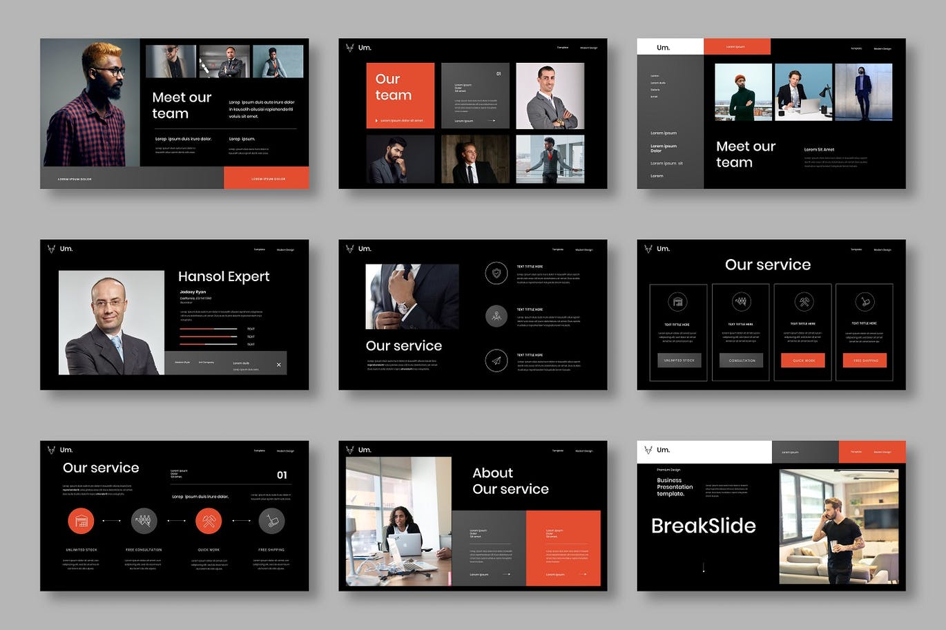 这次老不湿分享的是,高端商业商务提案powerpoint幻灯片演示模板(pptx),此演示模板可用于创意代理、公司简介、公司和业务、投资组合、摄影、Pitch Deck、初创公司,也可用于个人投资组合。