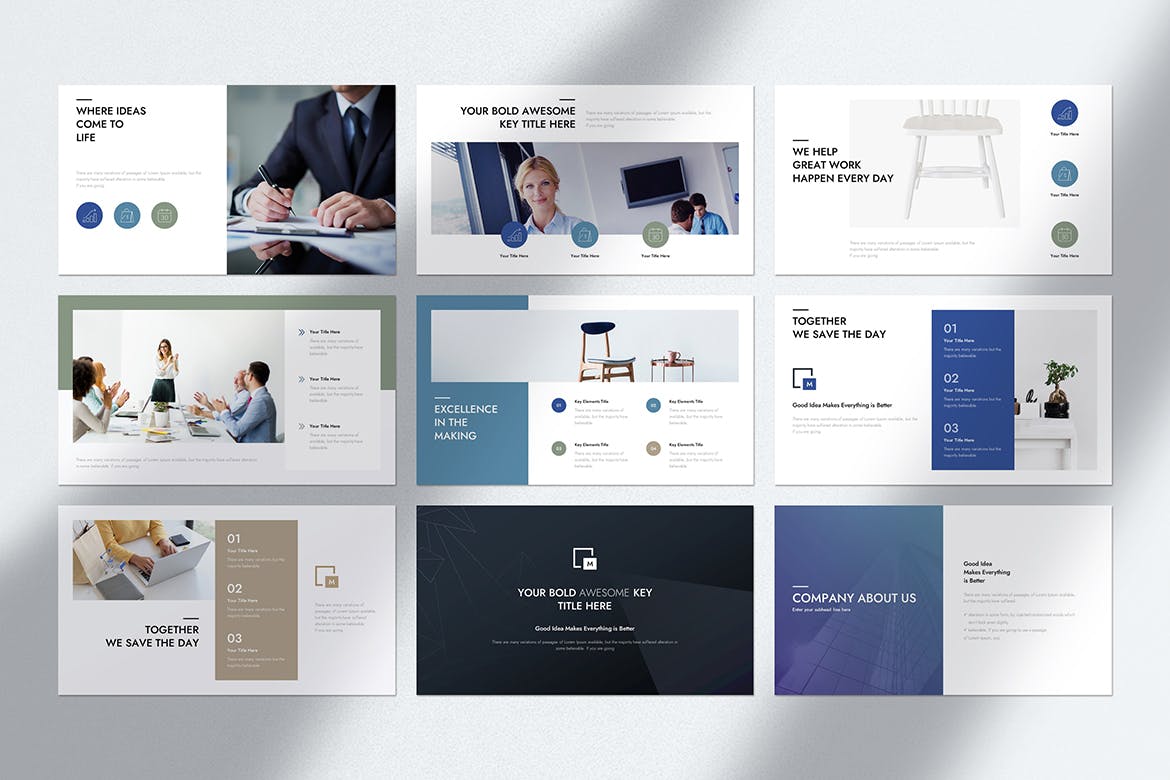 公司业务/项目提案PowerPoint模板,适合您的演示文稿样式模板,您需要独特、专业、干净、有创意、简单的演示文稿模板。所有幻灯片的设计风格都很棒。所有元素都易于编辑,您可以轻松更改颜色以使其与您的个人或公司品牌相匹配。