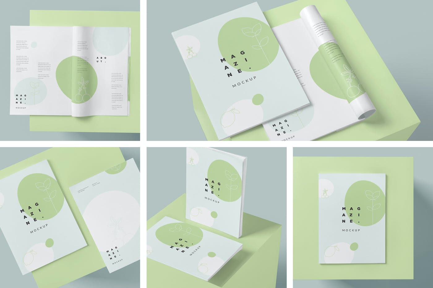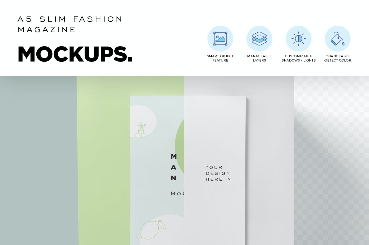 这款A5尺寸时尚杂志设计样机图合集可让您惊人地展示您的任何目录和封面设计。 具有智能对象选项和智能层,可自定义设计,阴影,效果和背景。