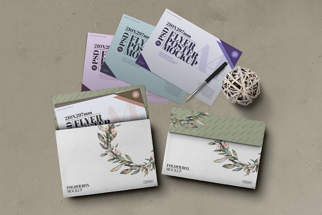 该A4尺寸海报文件夹纸板盒样机素材将帮助您改善演示文稿或任何其他项目。在这里您可以找到高质量的图像,以高分辨率拍摄。所有对象、灯光和阴影都被单独分开。通过智能对象可以轻松编辑样机。非常适合印刷和网页设计,用质量和专业使您的客户感到惊讶!
