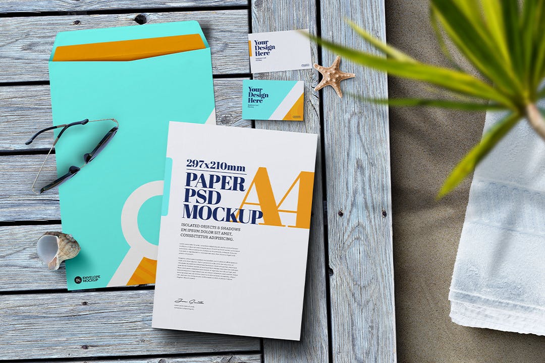 该A4信封&C4名片文具样机素材将帮助您改善演示文稿或任何其他项目。在这里您可以找到高质量的图像,以高分辨率拍摄。所有对象、灯光和阴影都被单独分开。通过智能对象可以轻松编辑样机。非常适合印刷和网页设计,用质量和专业使您的客户感到惊讶!