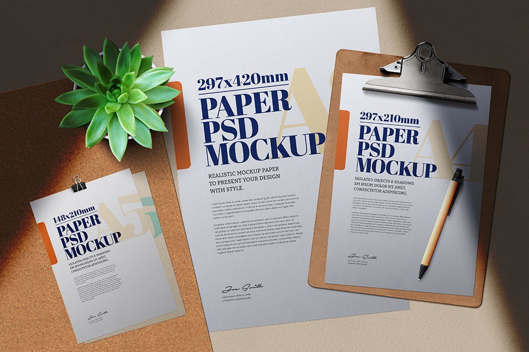 该A3/A4/A5尺寸信纸&剪贴板场景样机素材将帮助您改善演示文稿或任何其他项目。在这里您可以找到高质量的图像,以高分辨率拍摄。所有对象、灯光和阴影都被单独分开。通过智能对象可以轻松编辑样机。非常适合印刷和网页设计,用质量和专业使您的客户感到惊讶!