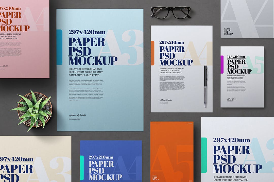 该A3/A4/A5尺寸传单海报样机合集将帮助您改善演示文稿或任何其他项目。在这里您可以找到高质量的图像,以高分辨率拍摄。所有对象、灯光和阴影都被单独分开。通过智能对象可以轻松编辑样机。非常适合印刷和网页设计,用质量和专业使您的客户感到惊讶!
