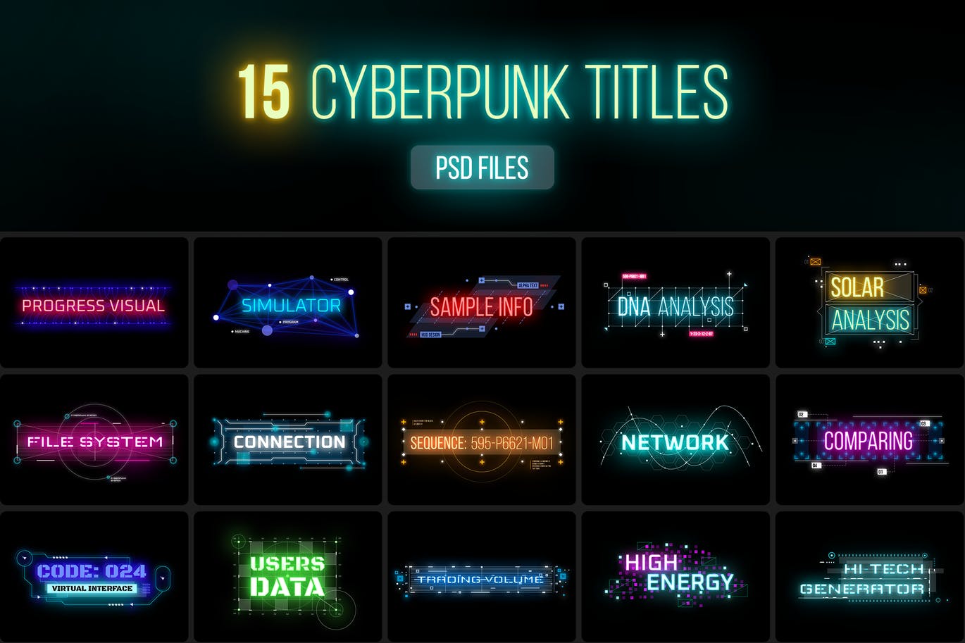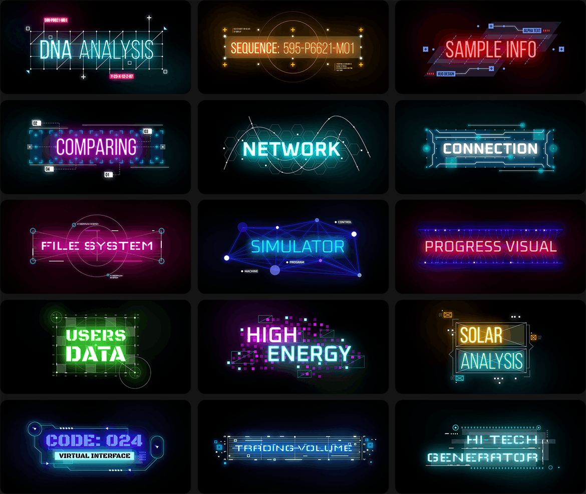 这次老不湿分享的是,高端绚丽高科技抽象赛博朋克风格主标题图层样式集合,您可以自定义此包中的所有标题,可以轻松编辑文本,颜色和发光效果并将其与您的项目匹配。您可以将这些标题用于视频,游戏,海报,名片等。