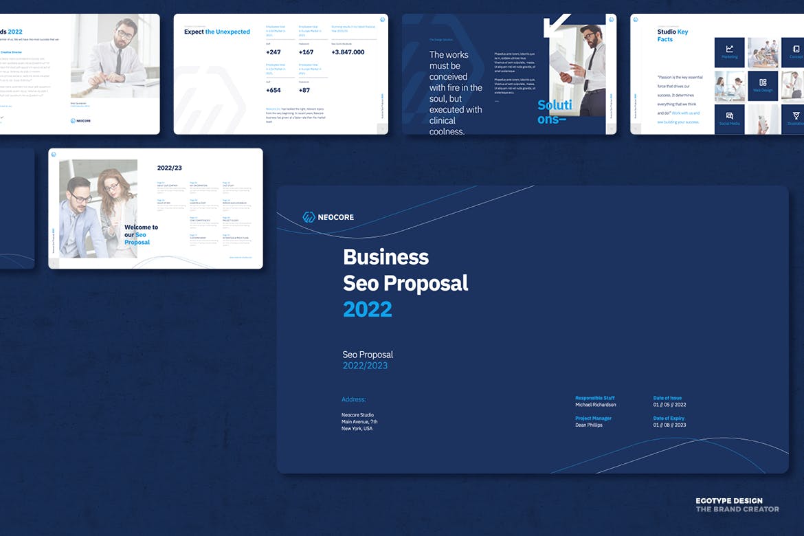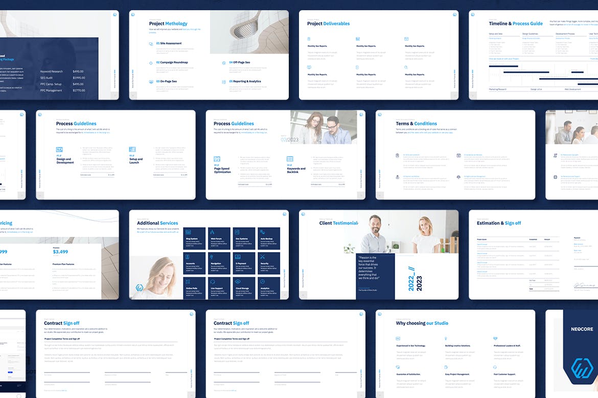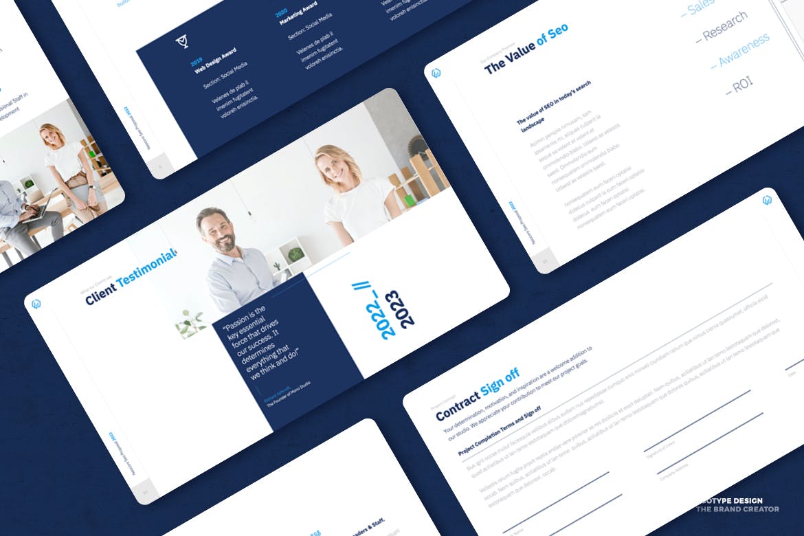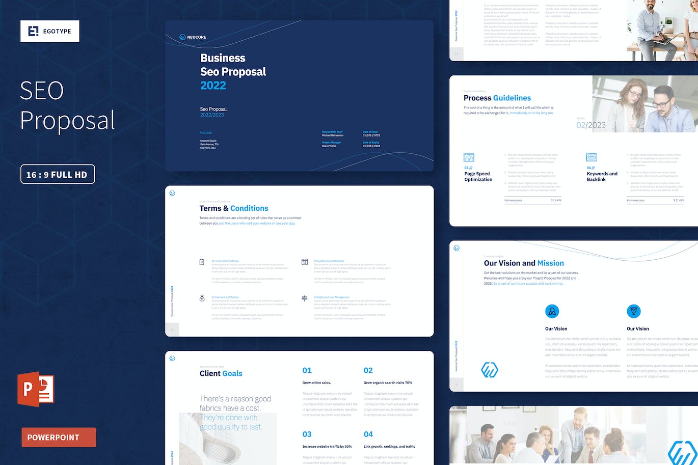SEO 提案 Powerpoint 演示模板是面向公司、代理机构、自由职业者等的宣传板演示。获得简单、干净和专业的设计概念,并在几分钟内准备高质量的宣传板演示模板。