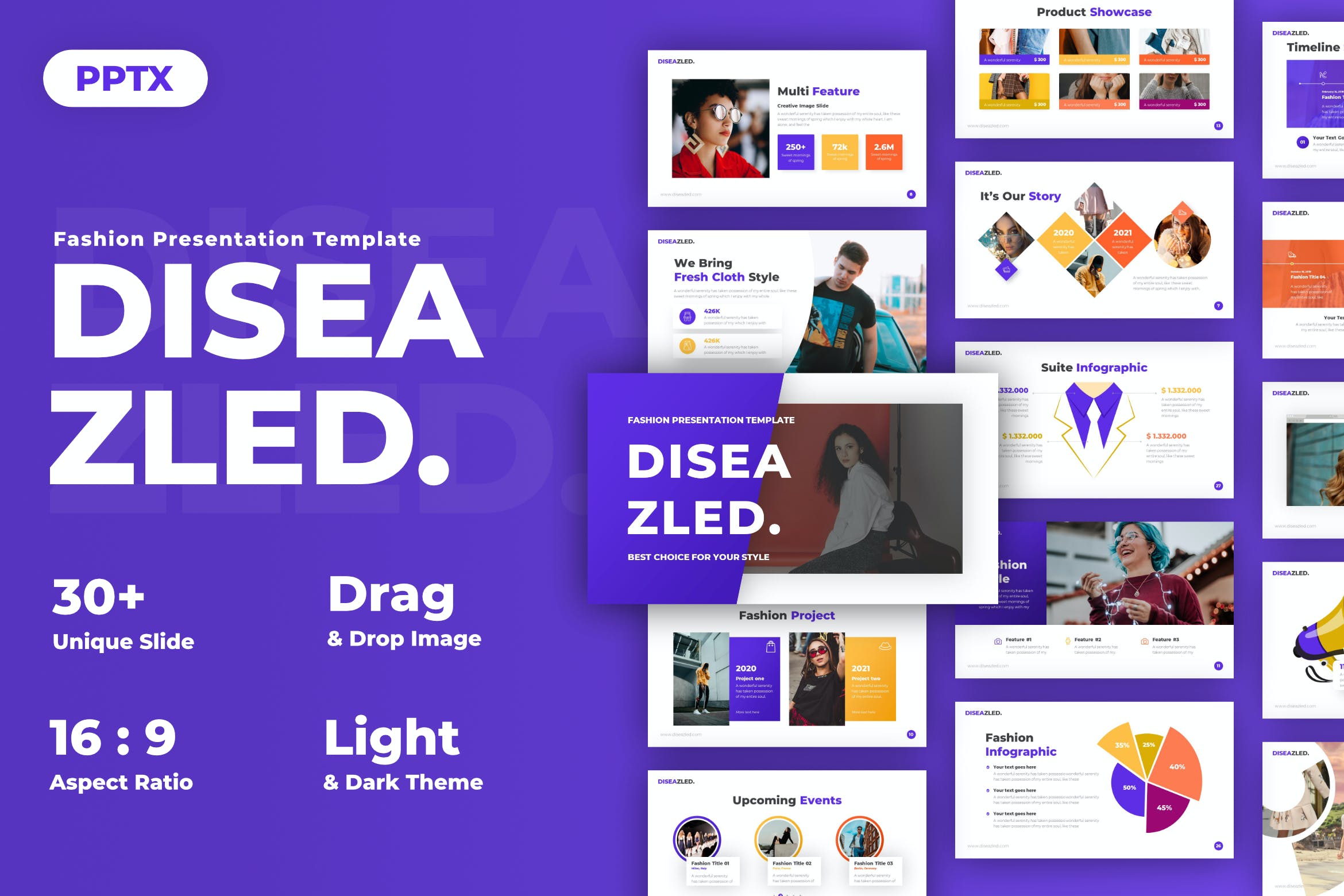 Diseazled时尚展示模板结合了各种设计方面和可用性,使公司简介模板更吸引人。每张幻灯片都很有用,更实用。不再有无用的形状和信息图表。