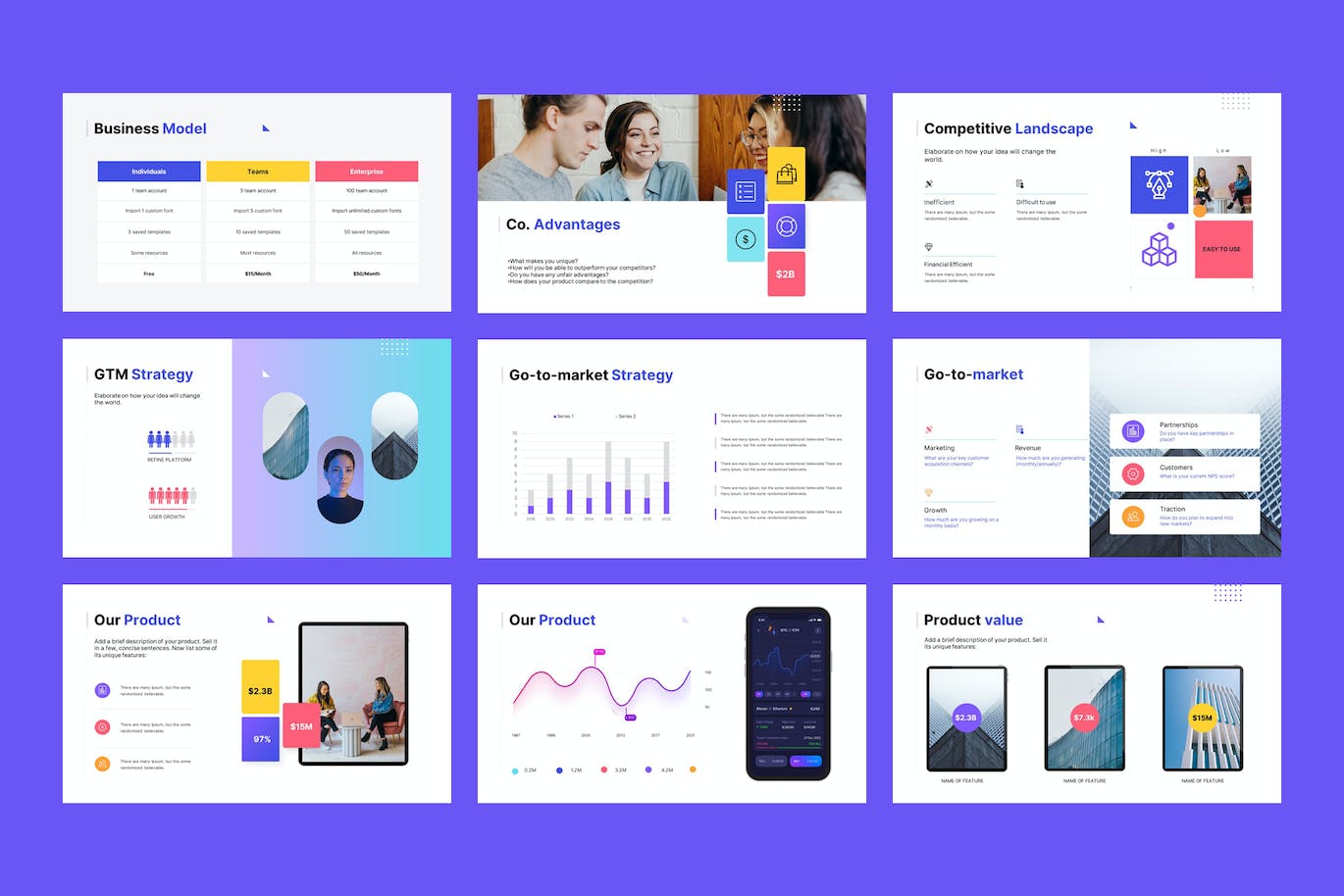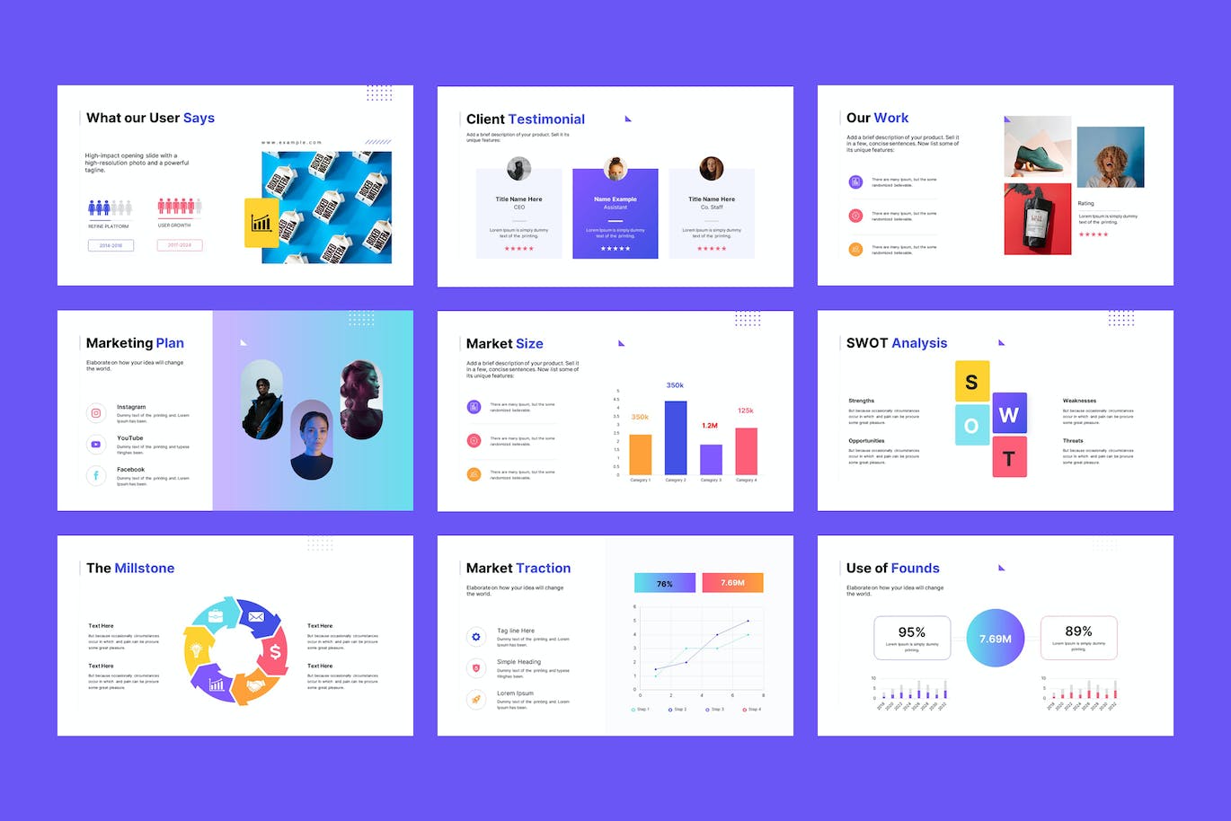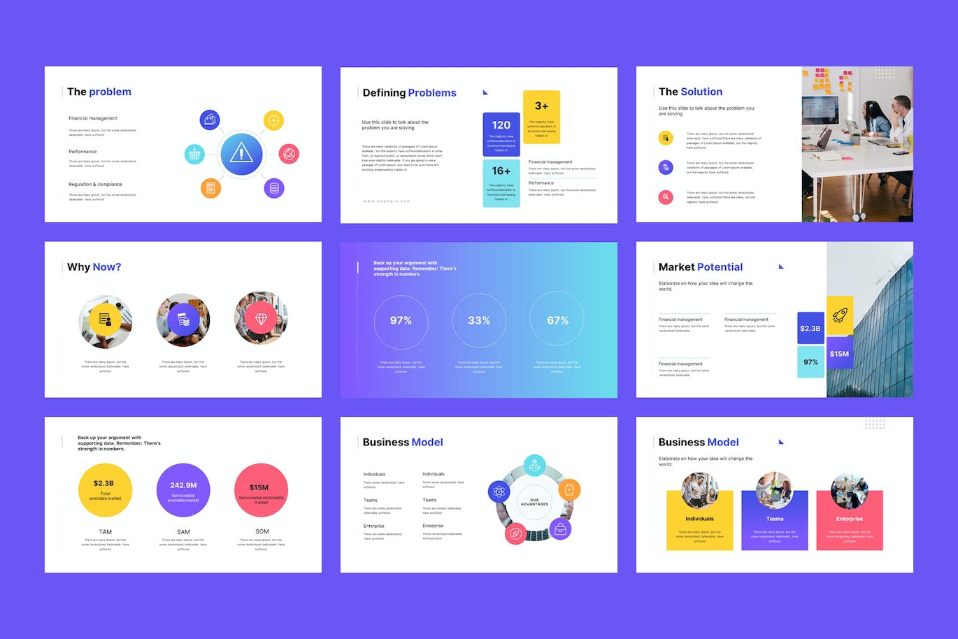 使用这个简单的PPT模板让您的伟大创意大放异彩。本演示文稿采用专业设计的幻灯片,可帮助您发现问题、提供全面的解决方案、提供市场概览并概述您的上市策略。