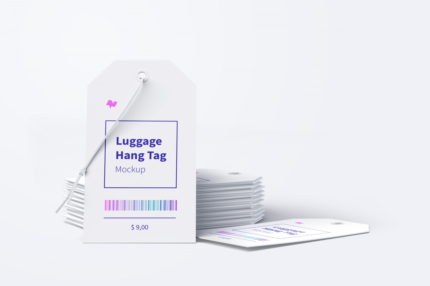 带绳行李标签吊牌设计样机,可用于展示你的标签、价格、广告、活动、吊牌设计等。600DPI,单独的对象,标签尺寸-2 x 3英寸,分辨率5000×3333 px。