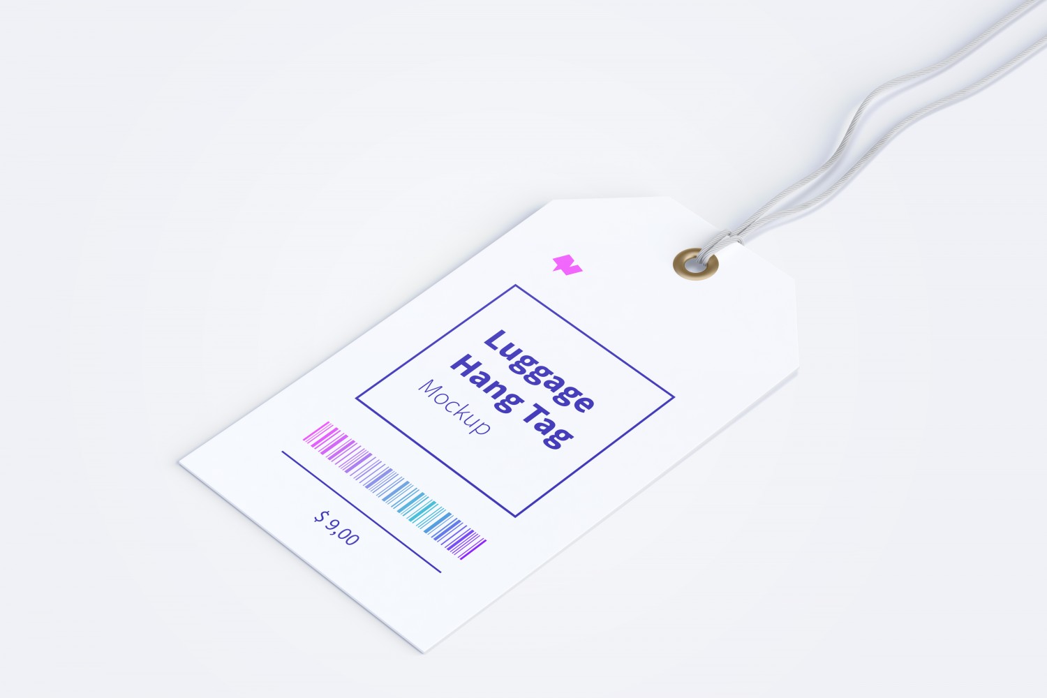 带细绳行李吊牌标签设计样机,可用于展示你的标签、价格、广告、活动、吊牌设计等。600DPI,单独的对象,标签尺寸-2 x 3英寸,分辨率5000×3333 px。