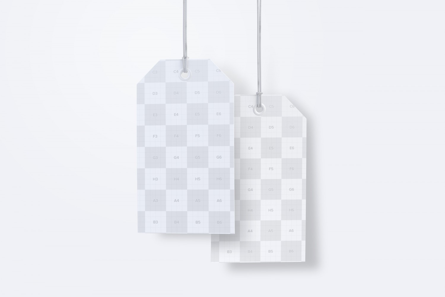 双面带细绳行李吊牌标签设计样机v3,可用于展示你的标签、价格、广告、活动、吊牌设计等。600DPI,单独的对象,标签尺寸-2 x 3英寸,分辨率5000×3333 px。