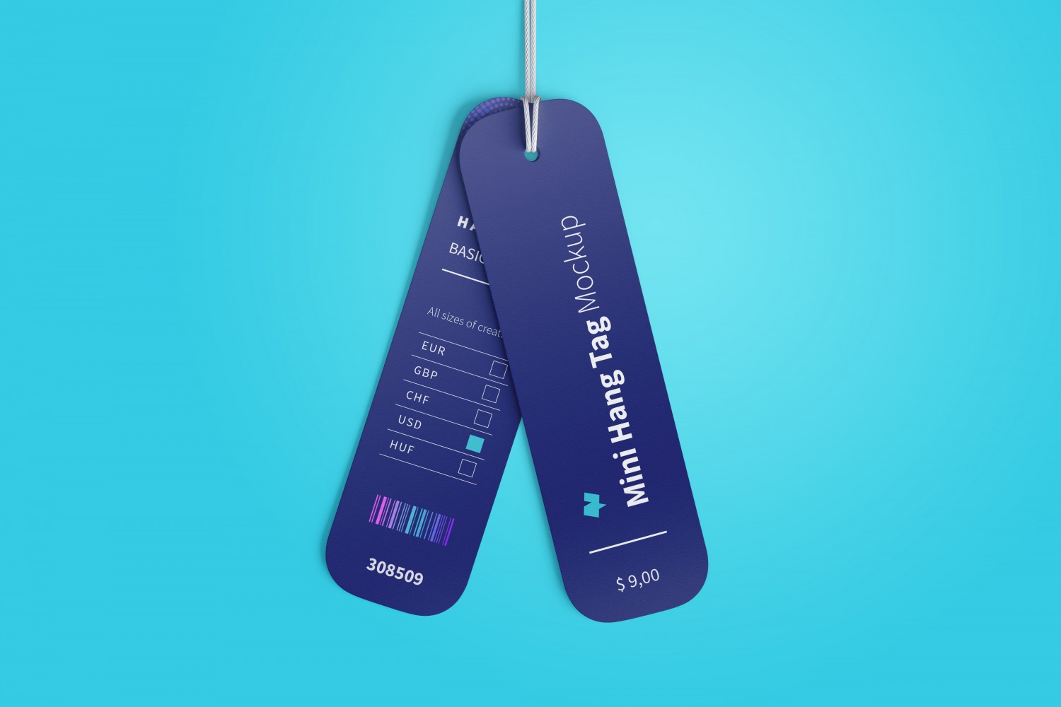 带绳迷你标签吊牌设计样机,可用于展示你的标签、价格、广告、活动、吊牌设计等。600DPI,单独的对象,标签尺寸1,05 x 3,75英寸,分辨率5000×3333 px。