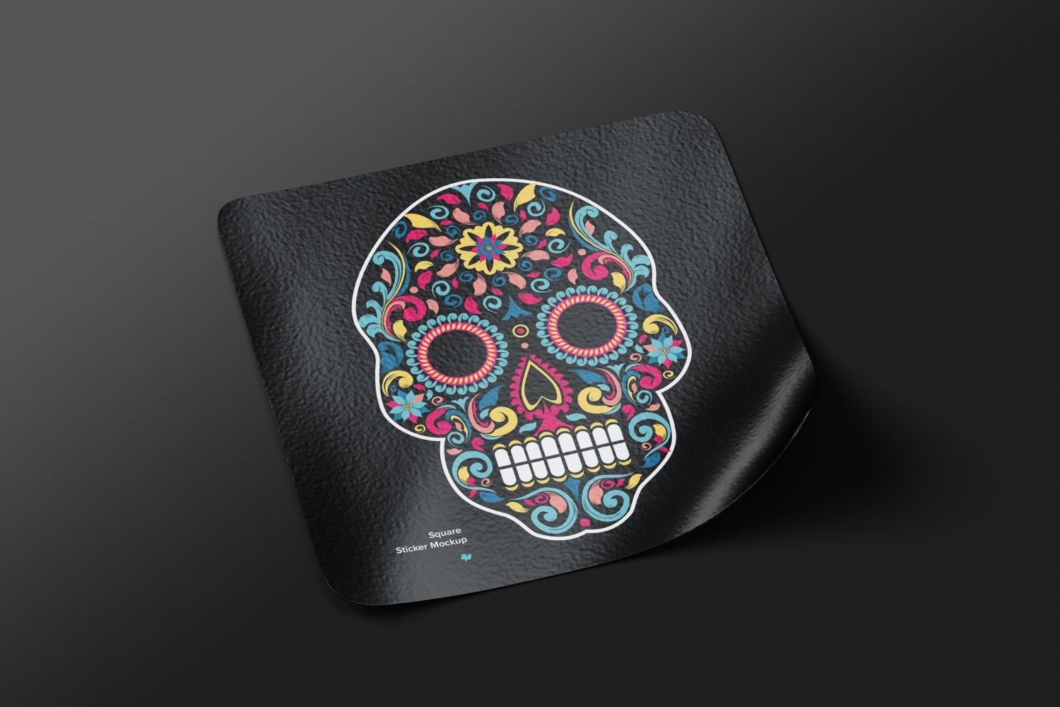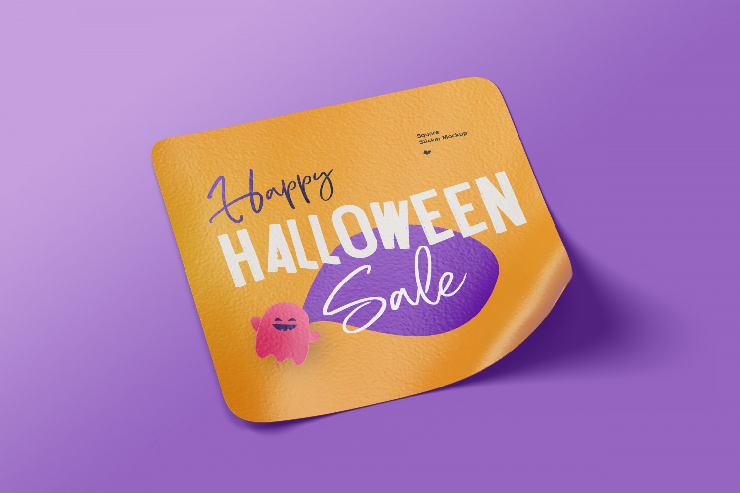 方形贴纸标签设计左视图样机,在此样机中,您可以看到纸张的纹理。可以完美的展示您的、广告、价格、品牌和标签设计。3D图层,分辨率5000×3333 px。