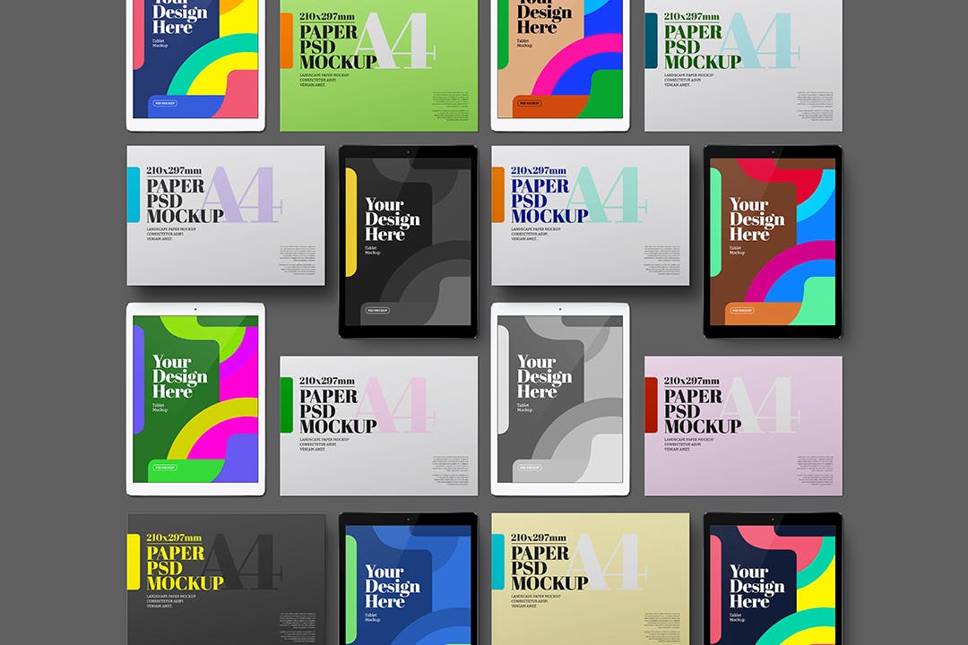 该高分辨率的平板电脑和A4横版尺寸纸张样机套装将帮助您改善演示文稿或任何其他项目。包含平板电脑样机和纸张样机,在这里您可以找到高质量的图像,以高分辨率拍摄。所有对象、灯光和阴影都单独分开。通过智能对象可以轻松编辑展示样机。它非常有用,优雅且易于应用。非常适合印刷和网页设计。用质量和美丽使您的顾客感到惊讶!