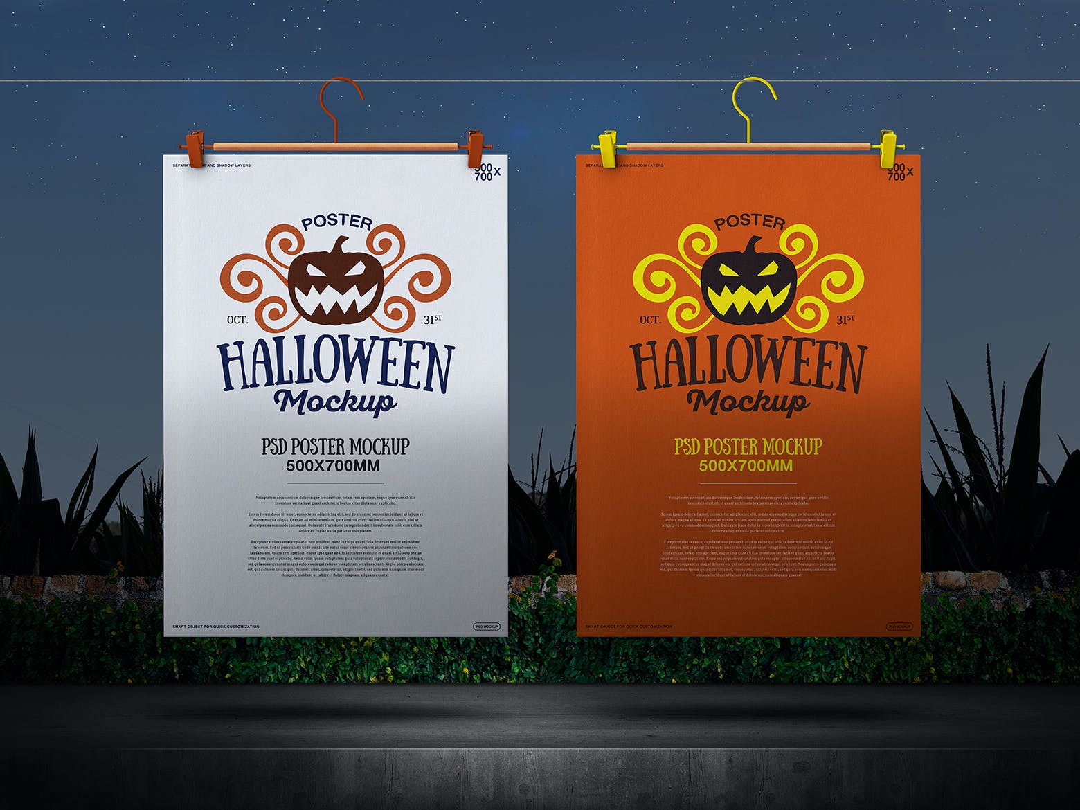 该高分辨率的500x700mm万圣节海报样机模板将帮助您改善演示文稿或任何其他项目。在这里您可以找到高质量的图像,以高分辨率拍摄。所有对象、灯光和阴影都单独分开。通过智能对象可以轻松编辑海报设计样机。它非常有用,优雅且易于应用。非常适合印刷和网页设计。用质量和美丽使您的顾客感到惊讶!