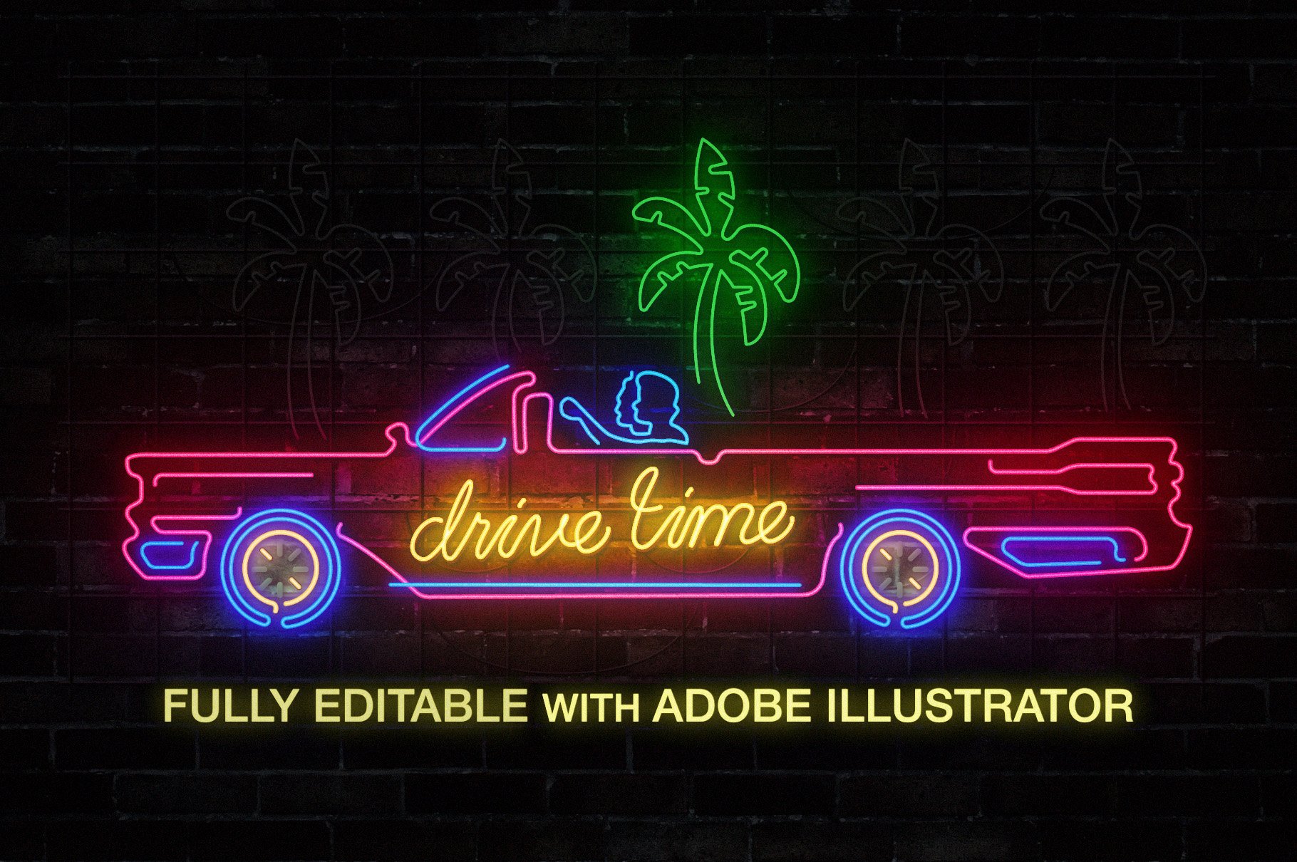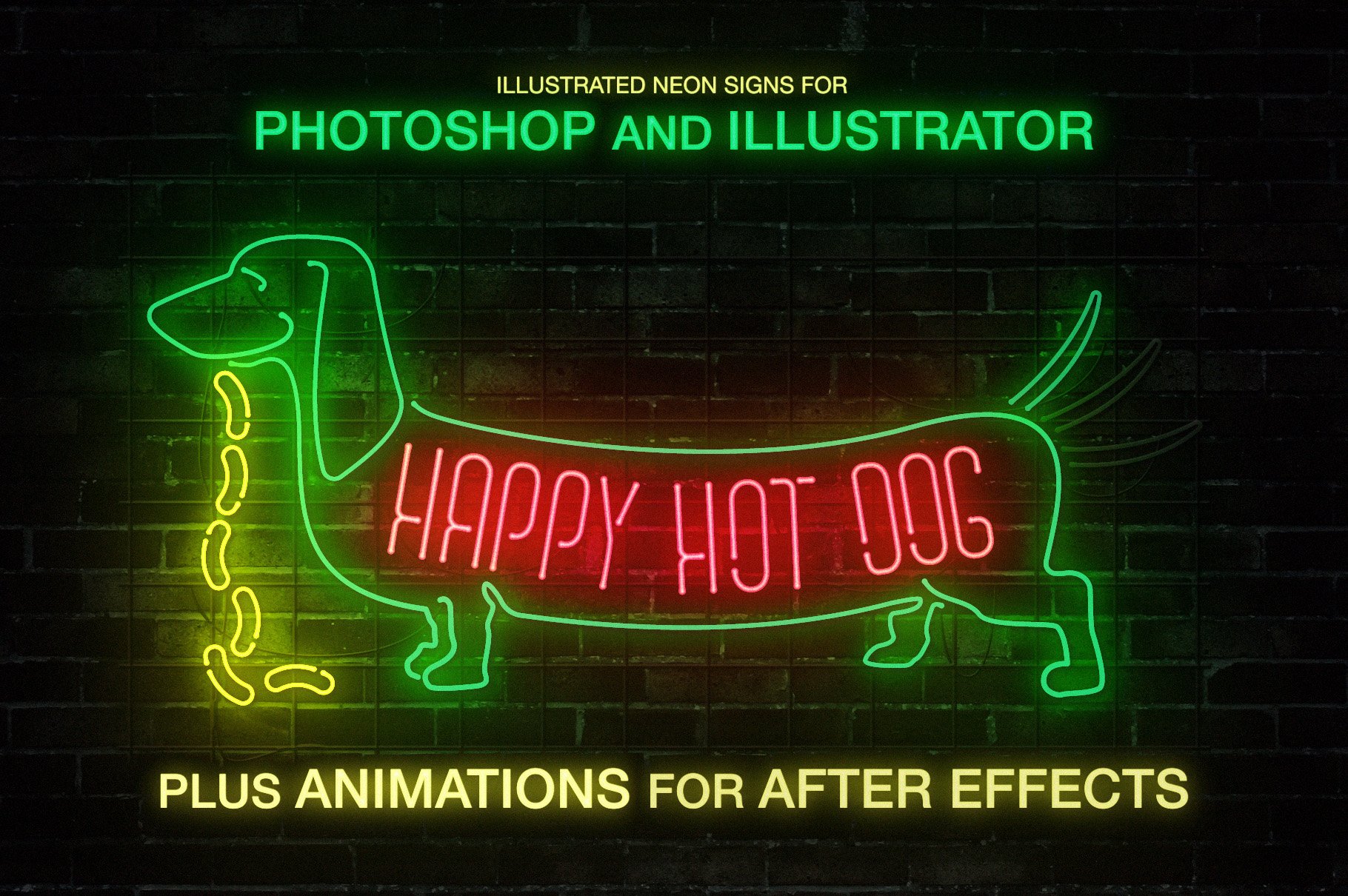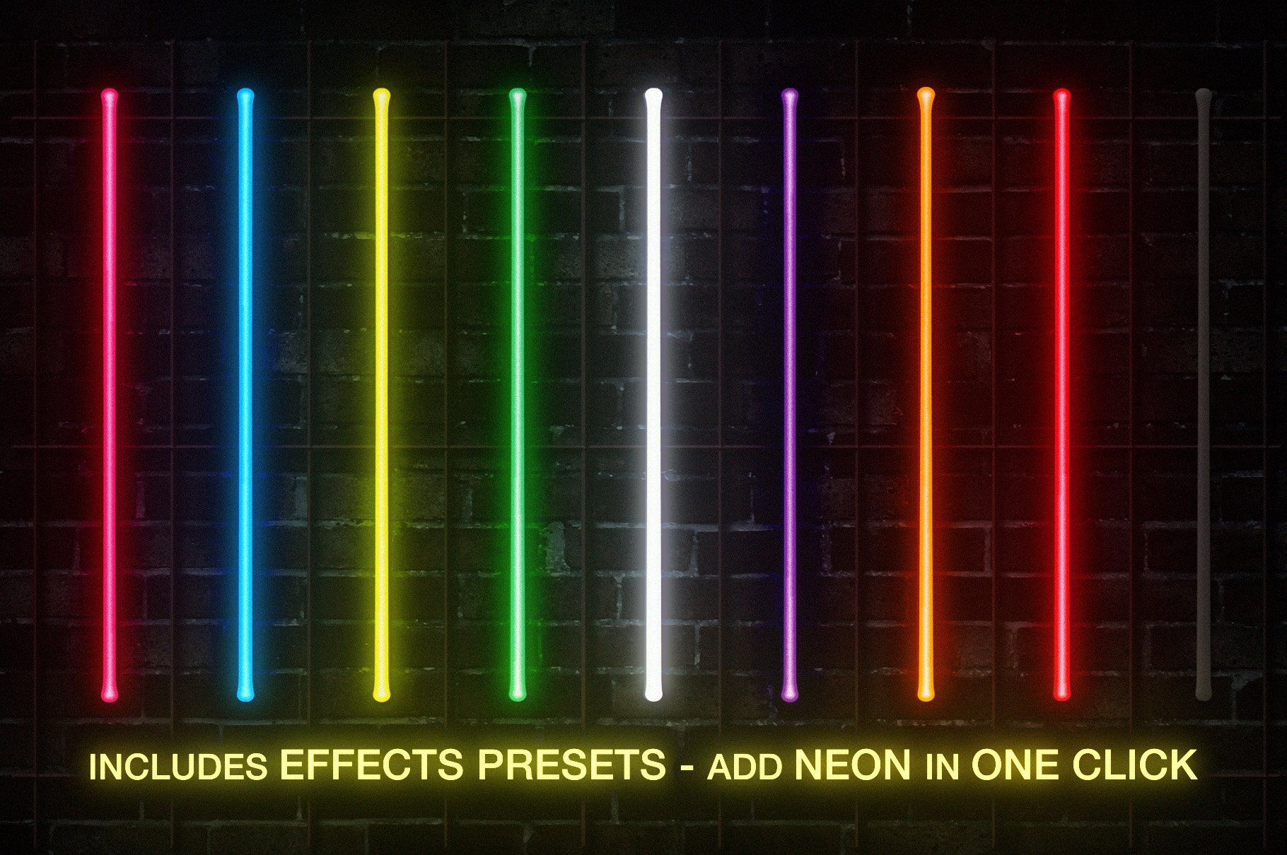 它为Photoshop,Illustrator和After Effects提供了单独的版本,每种格式均使用其自身的本机效果,并经过精心调整以实现完美的霓虹灯外观,并可以完全编辑以适合您自己的项目。还包括用于Photoshop和Illustrator的“图形样式”预设,可轻松为您的插图添加真实的霓虹灯效果。