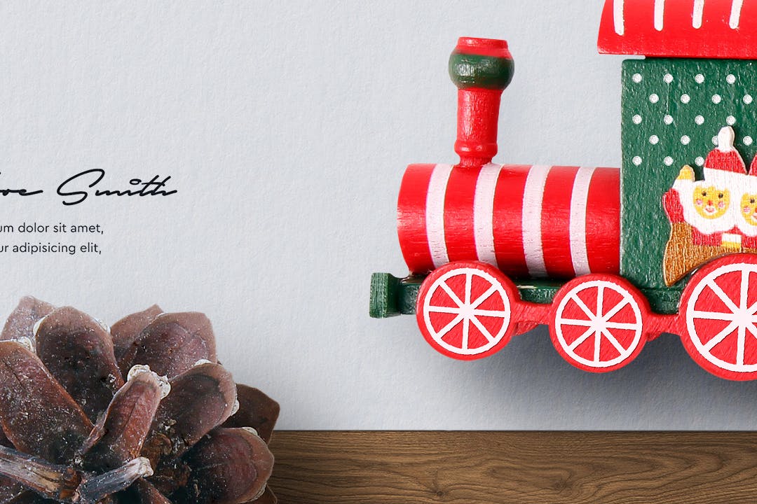 该木制火车圣诞场景A4海报文具样机将帮助您改善演示文稿或任何其他项目。在这里您可以找到高质量的图像,以高分辨率拍摄。所有对象、灯光和阴影都被单独分开。通过智能对象可以轻松编辑圣诞样机。它非常有用、优雅且易于应用。非常适合印刷和网页设计。用质量和美丽使您的顾客感到惊讶!