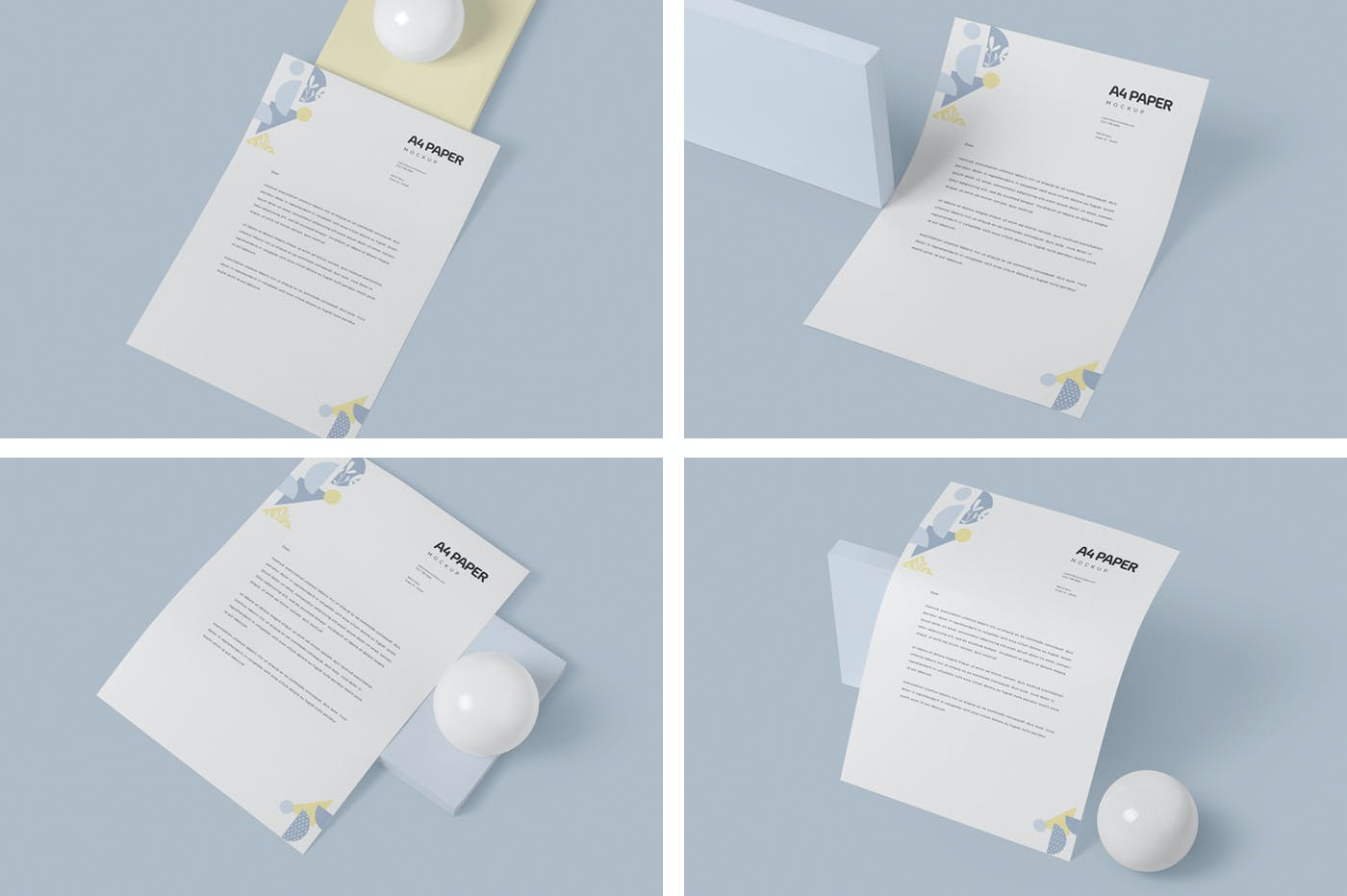 使用这4张A4尺寸的纸张效果图展示样机,以真实的产品展示您出色的文具品牌设计。这些纸张样机为所有自定义提供智能对象和命名层。