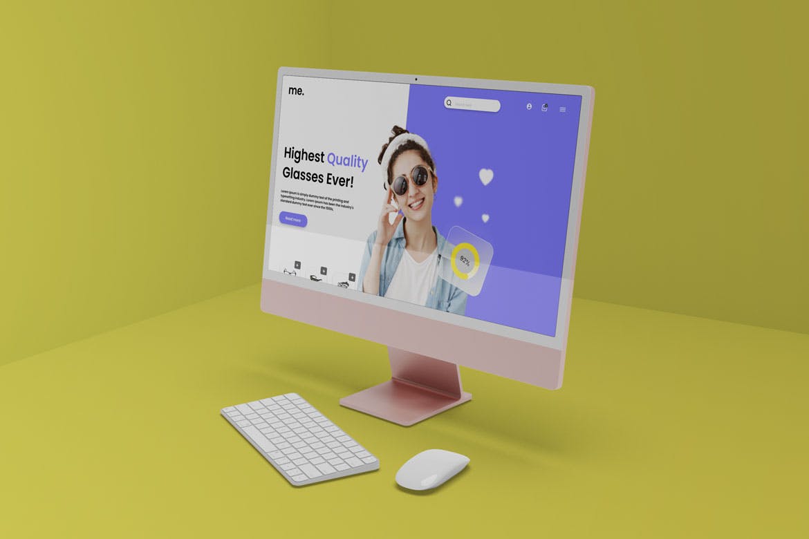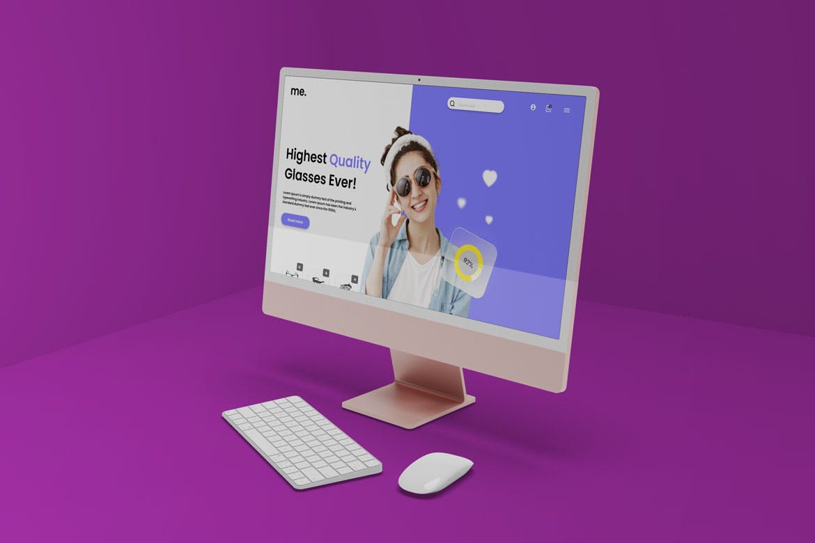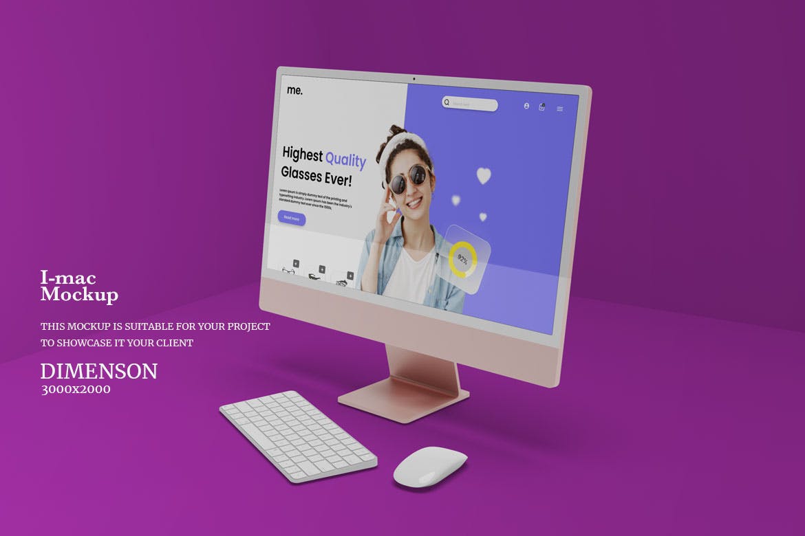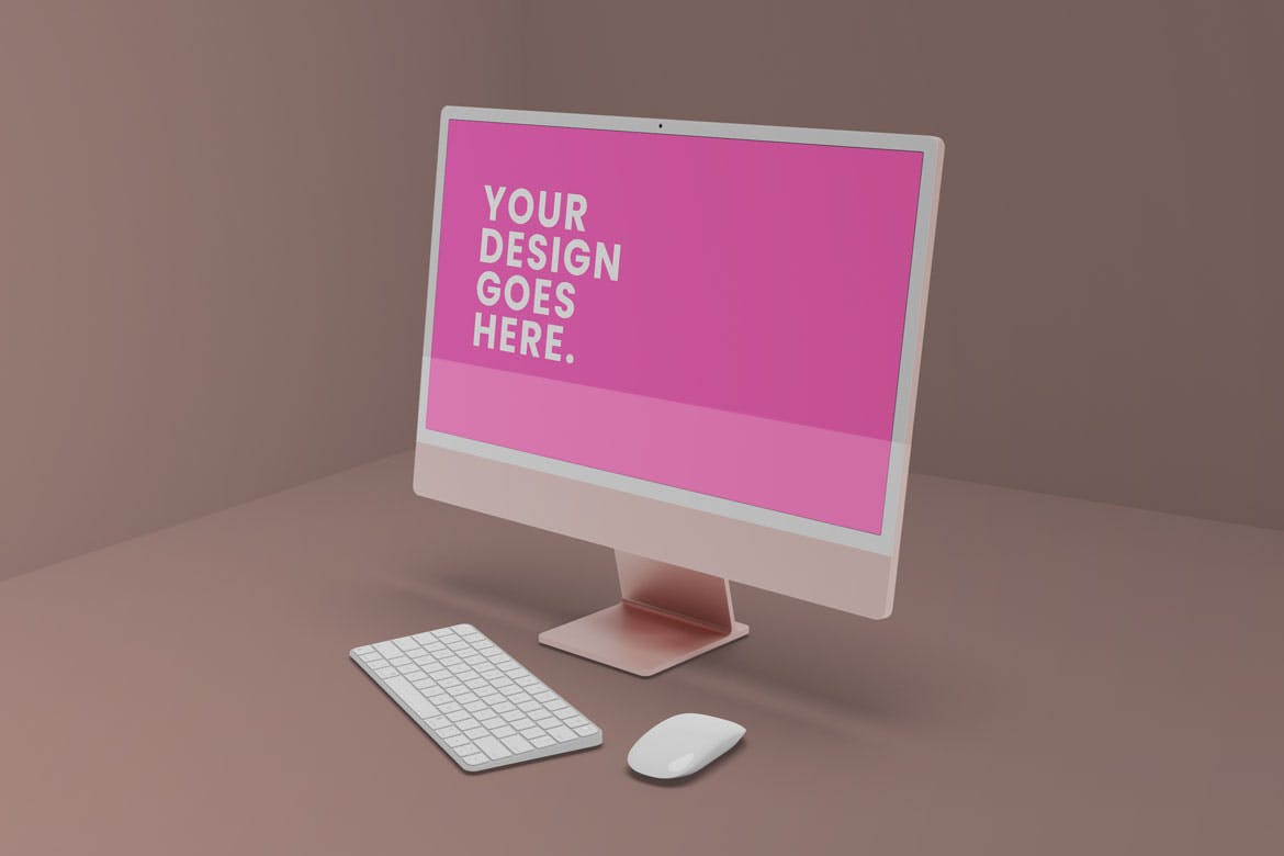 用这个外观新颖的iMac电脑显示器样机展示您的设计。使用 Photoshop 中的智能对象功能很容易应用。因此,您可以在几秒钟内完成您的设计。样机是用结构良好的层创建的。