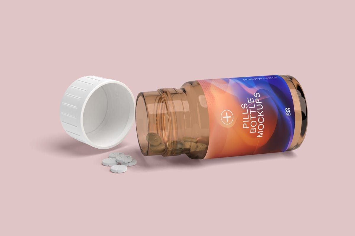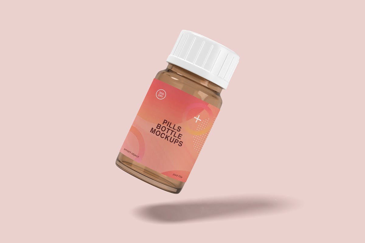 这是一个药瓶样机,适合在逼真的展示中专业地展示您的药瓶设计。提供具有智能对象功能的 PSD格式,您可以在几秒钟内用自己的设计替换当前设计。